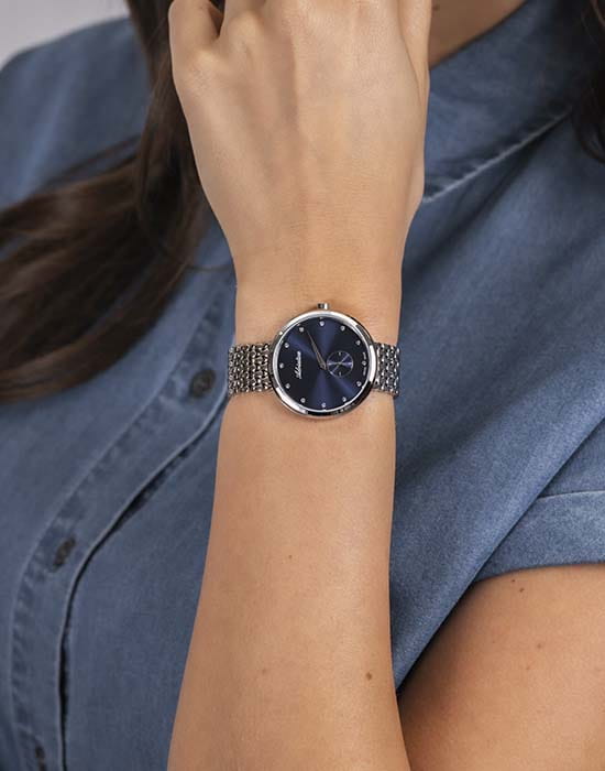 Часы Adriatica A3724.5145Q представляют собой гармоничное сочетание швейцарского качества и изысканного дизайна, подходящие для ценителей стильных аксессуаров. Их синий циферблат, украшенный 12 фианитами, а секундная стрелка вынесена на отдельный циферблат, что придает особую утонченность и элегантность. Корпус диаметром 34 мм и толщиной 7 мм выполнен из нержавеющей стали, что обеспечивает долговечность и надежность. Кварцевый механизм гарантирует точность хода, а водозащита 30WR защищает часы от случайных брызг. Браслет из нержавеющей стали с ювелирной застежкой обеспечивает комфортное ношение и добавляет изделию дополнительную элегантность. Минеральное стеклоМинеральное стеклоМинеральное стекло представляет собой искусственно выращенный минерал кварца. Такое стекло отличается особой устойчивостью к повреждениям и царапинам. Уступает по некоторым качествам сапфировому стеклу. защищает циферблат от внешних воздействий, сохраняя его безупречный вид. Часы Adriatica A3724.5145Q — это идеальный аксессуар для тех, кто ценит швейцарское качество и утонченный стиль.