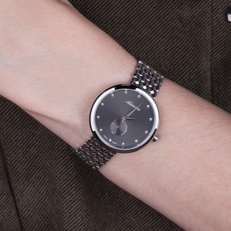 Часы Adriatica A3724.5146Q представляют собой гармоничное сочетание швейцарского качества и изысканного дизайна, подходящие для ценителей стильных аксессуаров. Их черный циферблат, украшенный 12 фианитами, а секундная стрелка вынесена на отдельный циферблат, что придает особую утонченность и элегантность. Корпус диаметром 34 мм и толщиной 7 мм выполнен из нержавеющей стали, что обеспечивает долговечность и надежность. Кварцевый механизм гарантирует точность хода, а водозащита 30WR защищает часы от случайных брызг. Браслет из нержавеющей стали с ювелирной застежкой обеспечивает комфортное ношение и добавляет изделию дополнительную элегантность. Минеральное стеклоМинеральное стеклоМинеральное стекло представляет собой искусственно выращенный минерал кварца. Такое стекло отличается особой устойчивостью к повреждениям и царапинам. Уступает по некоторым качествам сапфировому стеклу. защищает циферблат от внешних воздействий, сохраняя его безупречный вид. Часы Adriatica A3724.5146Q — это идеальный аксессуар для тех, кто ценит швейцарское качество и утонченный стиль.