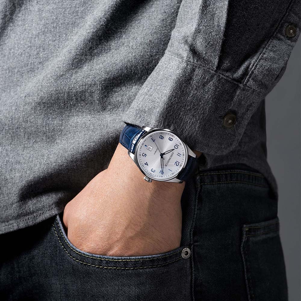 Мужские механические швейцарские часы с автоподзаводом Aerowatch Les Grandes Classiques 60996 AA01. Сапфировое стеклоСапфировое стеклоПрочный и надёжный материал из кристалла сапфира синтетического происхождения, характеризующийся особой твёрдостью и устойчивостью к царапинам и повреждениям. устойчивое к появлению царапин, обладающее высокой прозрачностью. Корпус изготовлен из нержавеющей стали. В часах установлен калибр 2824-2 ETA с 25 камнями, ротором. Серебристый sunray циферблат украшен синими арабскими цифрами и скелетонизированными стрелками, окошко даты в положении 6 часов. Класс водозащиты: 50 метров, позволит защитить корпус от случайных брызг или капель дождя. Кожаный ремешок на стандартной застёжке.