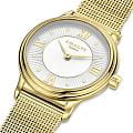 Amalys AMW-168 — женская модель с утончённым классическим дизайном, в которой сочетаются элегантность и практичность. Круглый корпус диаметром 28 мм выполнен из нержавеющей стали с PVD-покрытиемPVDУльтратонкое покрытие наносится в технике вакуумного напыления, сочетает в себе нитрид титана особой прочности со слоем золота или оксида хрома. Несёт в себе декоративную или защитную функцию., гармонирующим с браслетом шириной 14 мм в том же исполнении. Защитную функцию выполняет сапфировое стеклоСапфировое стеклоПрочный и надёжный материал из кристалла сапфира синтетического происхождения, характеризующийся особой твёрдостью и устойчивостью к царапинам и повреждениям., стойкое к царапинам и сохраняющее прозрачность. Механизм — кварцевый, обеспечивающий точность и стабильность хода. Браслет миланского плетения с PVD-покрытиемPVDУльтратонкое покрытие наносится в технике вакуумного напыления, сочетает в себе нитрид титана особой прочности со слоем золота или оксида хрома. Несёт в себе декоративную или защитную функцию. снабжён раскладным замкомРаскладной замокДанный вариант застежки используется только на часах с металлическим браслетом. Отличительная особенность такого крепления в том, что длина браслета становится универсальной и вы можете самостоятельно отрегулировать нужный вам размер – застежка просто двигается по браслету часов., который сочетает надёжность фиксации и удобство повседневного использования. Водозащита 5 ATM защищает часы от случайных брызг и дождя. Циферблат с римскими индексами и изящными стрелками подчёркивает классическую эстетику модели, делая её уместной как в повседневных образах, так и в торжественной обстановке.