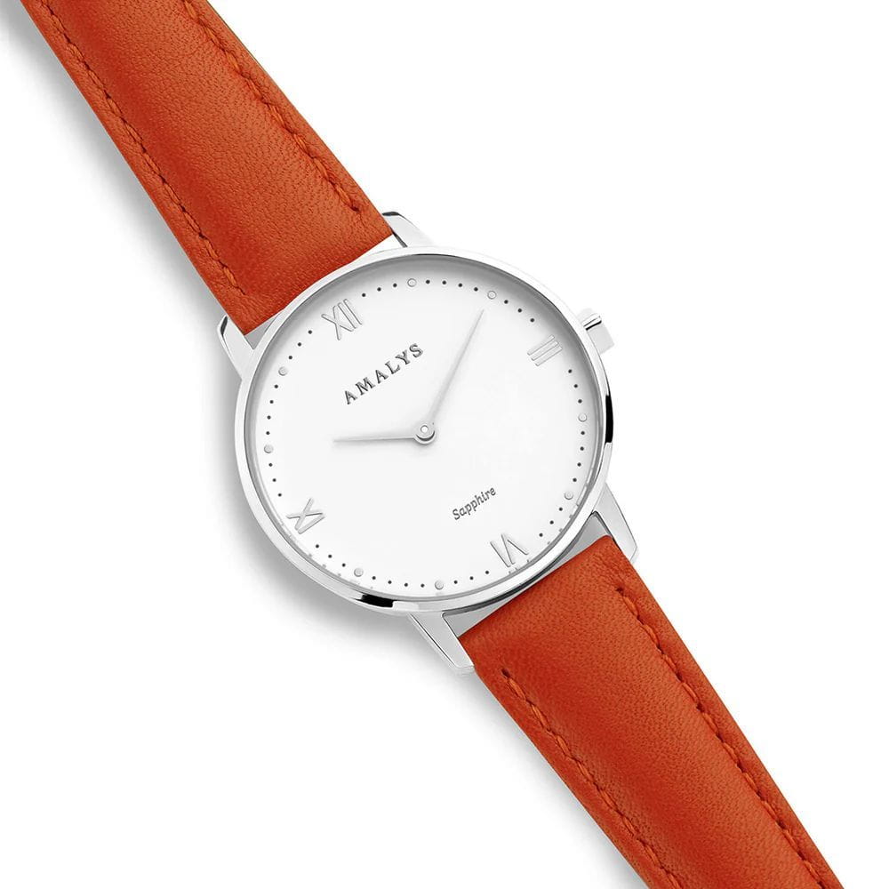 Amalys AMW-187 — женская модель с утончённым классическим дизайном, в которой сочетаются элегантность и практичность. Круглый корпус диаметром 33 мм выполнен из нержавеющей стали, гармонирующим с ремешком шириной 16 мм в том же исполнении. Защитную функцию выполняет сапфировое стеклоСапфировое стеклоПрочный и надёжный материал из кристалла сапфира синтетического происхождения, характеризующийся особой твёрдостью и устойчивостью к царапинам и повреждениям., стойкое к царапинам и сохраняющее прозрачность. Механизм — кварцевый, обеспечивающий точность и стабильность хода. Кожаный ремешок на стандартной застежке, который сочетает надёжность фиксации и удобство повседневного использования. Водозащита 3 ATM защищает часы от случайных брызг и дождя. Циферблат с римскими индексами и изящными стрелками подчёркивает классическую эстетику модели, делая её уместной как в повседневных образах, так и в торжественной обстановке.