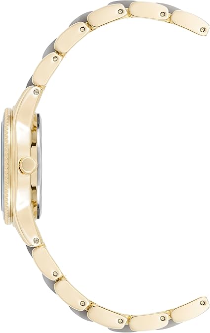 Женские кварцевые часы Anne Klein 3212LGGB из коллекции Plastic сочетают элегантность и функциональность. Корпус из нержавеющей стали с PVDPVDУльтратонкое покрытие наносится в технике вакуумного напыления, сочетает в себе нитрид титана особой прочности со слоем золота или оксида хрома. Несёт в себе декоративную или защитную функцию.-покрытием в оттенке желтого золота придает модели роскошный вид, а круглый дизайн диаметром 30 мм подчеркивает классический стиль. Циферблат выполнен в сером цвете с перламутровым эффектом, украшен метками для удобного считывания времени. Стрелки с люминесцентным покрытиемЛюминесцентное покрытиеПозволяет считывать показания времени в темноте. Производители наносят на стрелки, часовые индексы, безель или поверхность циферблата светонакопительный состав, дающий холодное свечение. для отличной читаемости в любое время суток. Кварцевый механизм обеспечивает точность хода (±20 сек/мес) и питается от батарейки. Минеральное стеклоМинеральное стеклоМинеральное стекло представляет собой искусственно выращенный минерал кварца. Такое стекло отличается особой устойчивостью к повреждениям и царапинам. Уступает по некоторым качествам сапфировому стеклу. устойчиво к царапинам, а водонепроницаемость до 30 м (3 атм) защищает от брызг и дождя. Браслет выполнен из нержавеющей стали с PVDPVDУльтратонкое покрытие наносится в технике вакуумного напыления, сочетает в себе нитрид титана особой прочности со слоем золота или оксида хрома. Несёт в себе декоративную или защитную функцию.-покрытием, застежка — ювелирная.