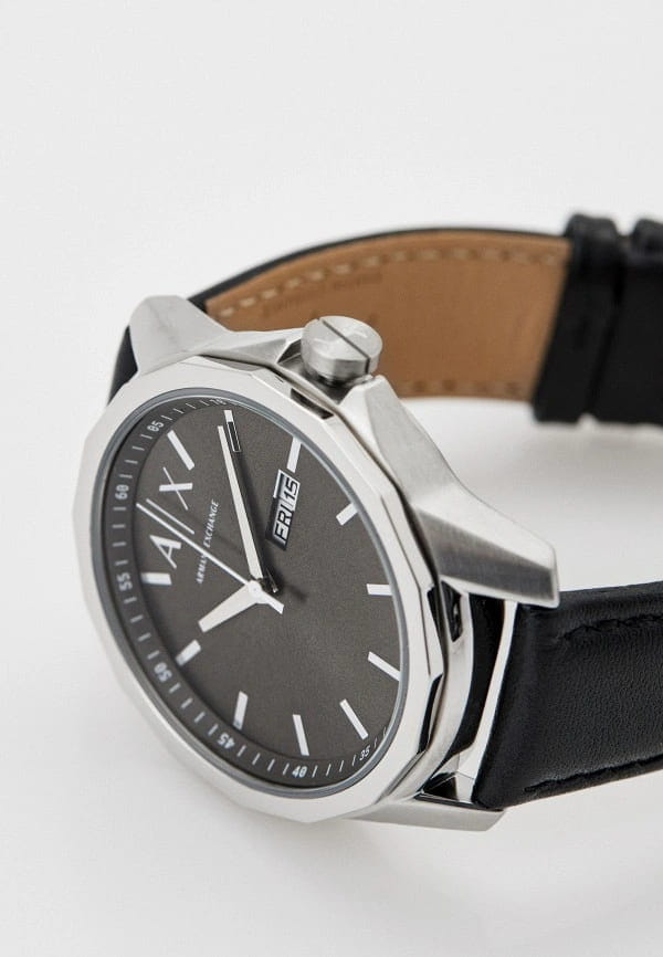 Мужские наручные часы с минеральным стекломМинеральное стеклоМинеральное стекло представляет собой искусственно выращенный минерал кварца. Такое стекло отличается особой устойчивостью к повреждениям и царапинам. Уступает по некоторым качествам сапфировому стеклу. Armani Exchange Banks AX1735, кварцевый механизм с высокой точностью. Класс водозащиты: 50 метров, позволит защитить корпус от случайных брызг или капель дождя. Корпус часов изготовлен из стали. Кожаный ремешок на стандартной застёжке. Метки в виде штрихов. Окошко даты в положении 3 часа. Заводная головка с защитой.