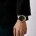 Мужские наручные часы с минеральным стекломМинеральное стеклоМинеральное стекло представляет собой искусственно выращенный минерал кварца. Такое стекло отличается особой устойчивостью к повреждениям и царапинам. Уступает по некоторым качествам сапфировому стеклу. Armani Exchange Hampton AX2443, кварцевый механизм с высокой точностью. Класс водозащиты: 50 метров, позволит защитить корпус от случайных брызг или капель дождя. Корпус и браслет часов изготовлены из стали с IP-покрытиемIP-покрытиеМетод ионного напыления. Демонстрирует повышенную устойчивость к истиранию, окислению и химическим веществам. Под воздействием высокого давления и температуры около 1500°C молекулы металла надёжно соединяются с частицами корпуса часов. цвета желтое золото. Браслет с раскладной застёжкойРаскладная застёжкаТакой тип застёжки используется только на браслетах из металла. Она никогда не раскрывается полностью, происходит разделение на 2 и более частей. Раскладывающая застёжка снизит вероятность потери часов к минимуму.. Окошко даты находятся в положении 3 часа.