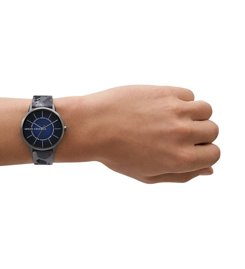 Мужские наручные часы на стандартной застежке Armani Exchange Cayde AX2752, кварцевый механизм с высокой точностью. Класс водозащиты: 50 метров, позволит защитить корпус от случайных брызг или капель дождя. Корпус часов изготовлен из стали. Минеральное стеклоМинеральное стеклоМинеральное стекло представляет собой искусственно выращенный минерал кварца. Такое стекло отличается особой устойчивостью к повреждениям и царапинам. Уступает по некоторым качествам сапфировому стеклу. устойчивое к мелким механическим повреждениям. Кожаный ремешок на стандартной застёжке. Градиентный темно-синий циферблат с логотипом бренда и метками в виде штрихов.