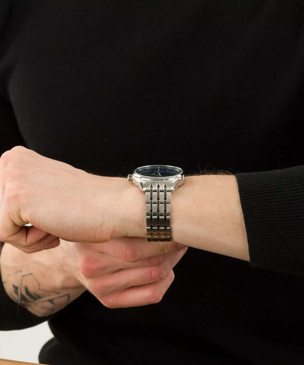 Мужские швейцарские часы Atlantic Worldmaster 1888 52759.41.51SM, механизм с высокой точностью. Циферблат часов с сапфировым стекломСапфировое стеклоПрочный и надёжный материал из кристалла сапфира синтетического происхождения, характеризующийся особой твёрдостью и устойчивостью к царапинам и повреждениям., устойчивым к появлению царапин и обладающее высокой прозрачностью. Класс водозащиты: 50 метров, позволит защитить корпус от случайных брызг или капель дождя. Корпус часов изготовлен из нержавеющей стали. Стальной браслет на раскладной застёжкеРаскладная застёжкаТакой тип застёжки используется только на браслетах из металла. Она никогда не раскрывается полностью, происходит разделение на 2 и более частей. Раскладывающая застёжка снизит вероятность потери часов к минимуму.. Окошко даты находится в положении 3 часа.