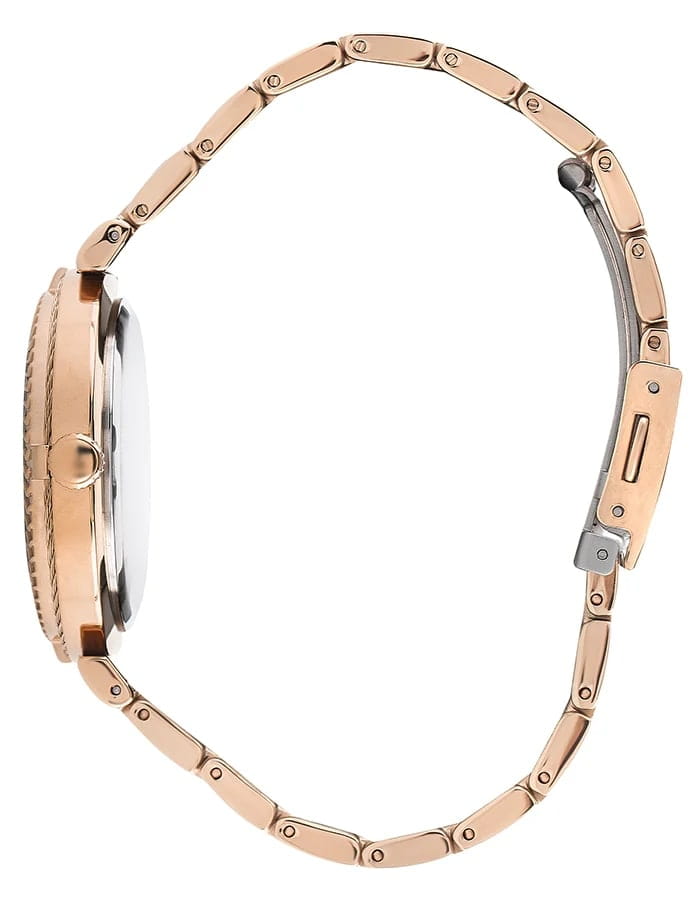 Водозащита до 3 ATM (30 метров) защищает часы от случайных брызг и дождя, но не подходит для плавания. Металлический браслет с раскладной застёжкойРаскладная застёжкаТакой тип застёжки используется только на браслетах из металла. Она никогда не раскрывается полностью, происходит разделение на 2 и более частей. Раскладывающая застёжка снизит вероятность потери часов к минимуму. и PVD-покрытиемPVDУльтратонкое покрытие наносится в технике вакуумного напыления, сочетает в себе нитрид титана особой прочности со слоем золота или оксида хрома. Несёт в себе декоративную или защитную функцию. розового золота обеспечивает комфортное ношение и надёжную фиксацию.