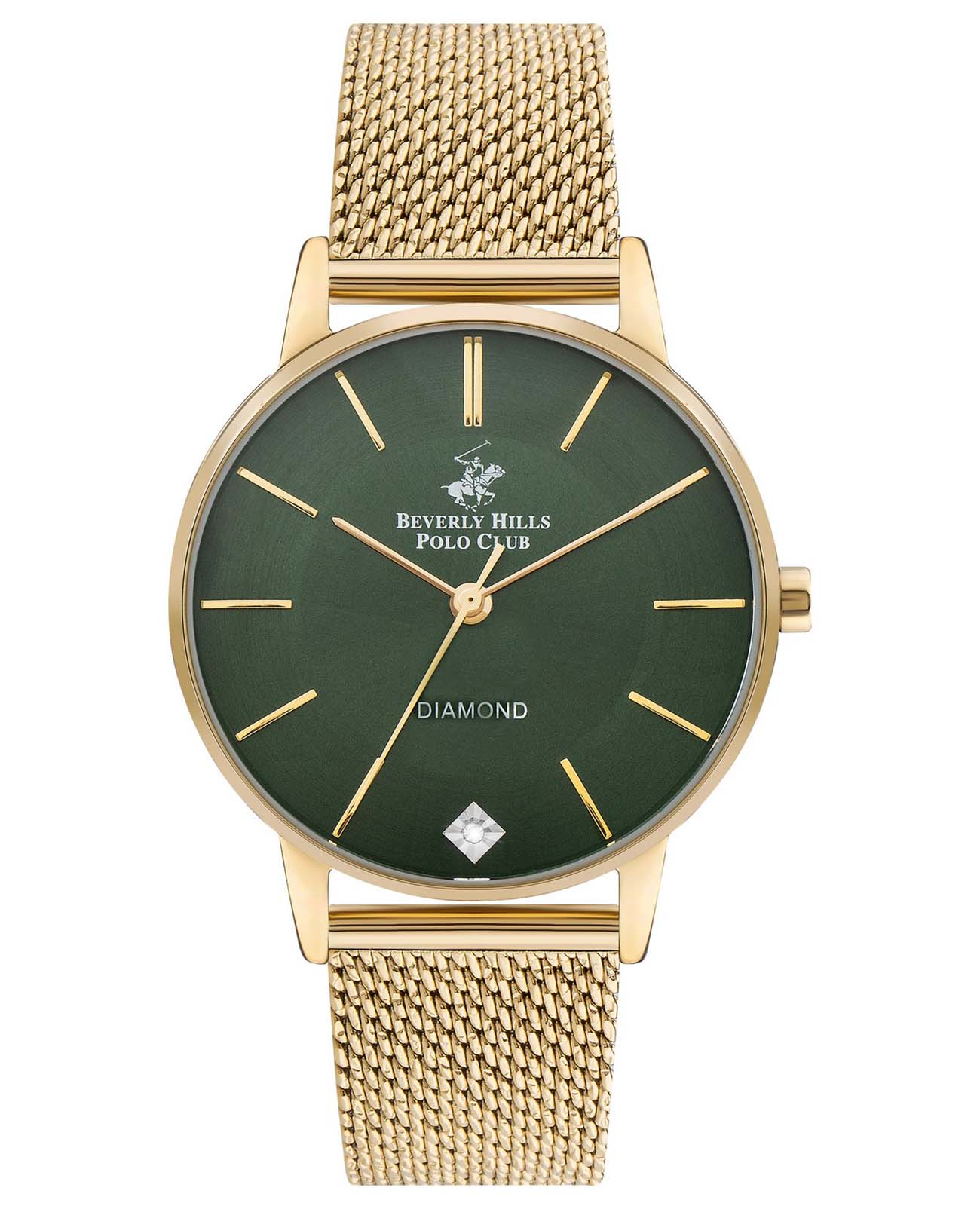 Американские женские часы с минеральным стекломМинеральное стеклоМинеральное стекло представляет собой искусственно выращенный минерал кварца. Такое стекло отличается особой устойчивостью к повреждениям и царапинам. Уступает по некоторым качествам сапфировому стеклу. Beverly Hills Polo Club BP3394C.170, кварцевый механизм с высокой точностью. Корпус и браслет часов изготовлены из нержавеющей стали с IP-покрытиемIP-покрытиеМетод ионного напыления. Демонстрирует повышенную устойчивость к истиранию, окислению и химическим веществам. Под воздействием высокого давления и температуры около 1500°C молекулы металла надёжно соединяются с частицами корпуса часов.. Циферблат инкрустирован бриллиантом. Класс водозащиты: 50 метров, позволит защитить корпус от случайных брызг или капель дождя. Стальной браслет миланского плетения на раскладной застёжкеРаскладная застёжкаТакой тип застёжки используется только на браслетах из металла. Она никогда не раскрывается полностью, происходит разделение на 2 и более частей. Раскладывающая застёжка снизит вероятность потери часов к минимуму..