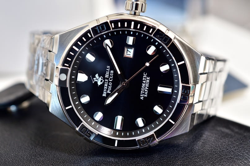 Американские мужские часы с сапфировым стекломСапфировое стеклоПрочный и надёжный материал из кристалла сапфира синтетического происхождения, характеризующийся особой твёрдостью и устойчивостью к царапинам и повреждениям. Beverly Hills Polo Club BP3575X.350, механический механизм (автоматический калибр) с высокой точностью. Сапфировое стеклоСапфировое стеклоПрочный и надёжный материал из кристалла сапфира синтетического происхождения, характеризующийся особой твёрдостью и устойчивостью к царапинам и повреждениям. устойчивое к появлению царапин, обладающее высокой прозрачностью. Класс водозащиты: 100 метров, позволит плавать, нырять и заниматься другими водными видами спорта. Корпус часов изготовлен из стали. Стальной браслет на раскладной застёжкеРаскладная застёжкаТакой тип застёжки используется только на браслетах из металла. Она никогда не раскрывается полностью, происходит разделение на 2 и более частей. Раскладывающая застёжка снизит вероятность потери часов к минимуму.. БезельБезельВнешний ободок, закрепляющий стекло. В спортивных часах так называется поворотное кольцо с делениями на циферблате, выполняет роль таймера – замеряет отрезки времени на шкале. Неподвижный безель – элемент декора. Однонаправленно вращающийся безель на дайверских часах позволяет фиксировать моменты погружения и выныривания на поверхность. с IP-покрытиемIP-покрытиеМетод ионного напыления. Демонстрирует повышенную устойчивость к истиранию, окислению и химическим веществам. Под воздействием высокого давления и температуры около 1500°C молекулы металла надёжно соединяются с частицами корпуса часов..Стрелки и метки с люминесцентным покрытиемЛюминесцентное покрытиеПозволяет считывать показания времени в темноте. Производители наносят на стрелки, часовые индексы, безель или поверхность циферблата светонакопительный состав, дающий холодное свечение..