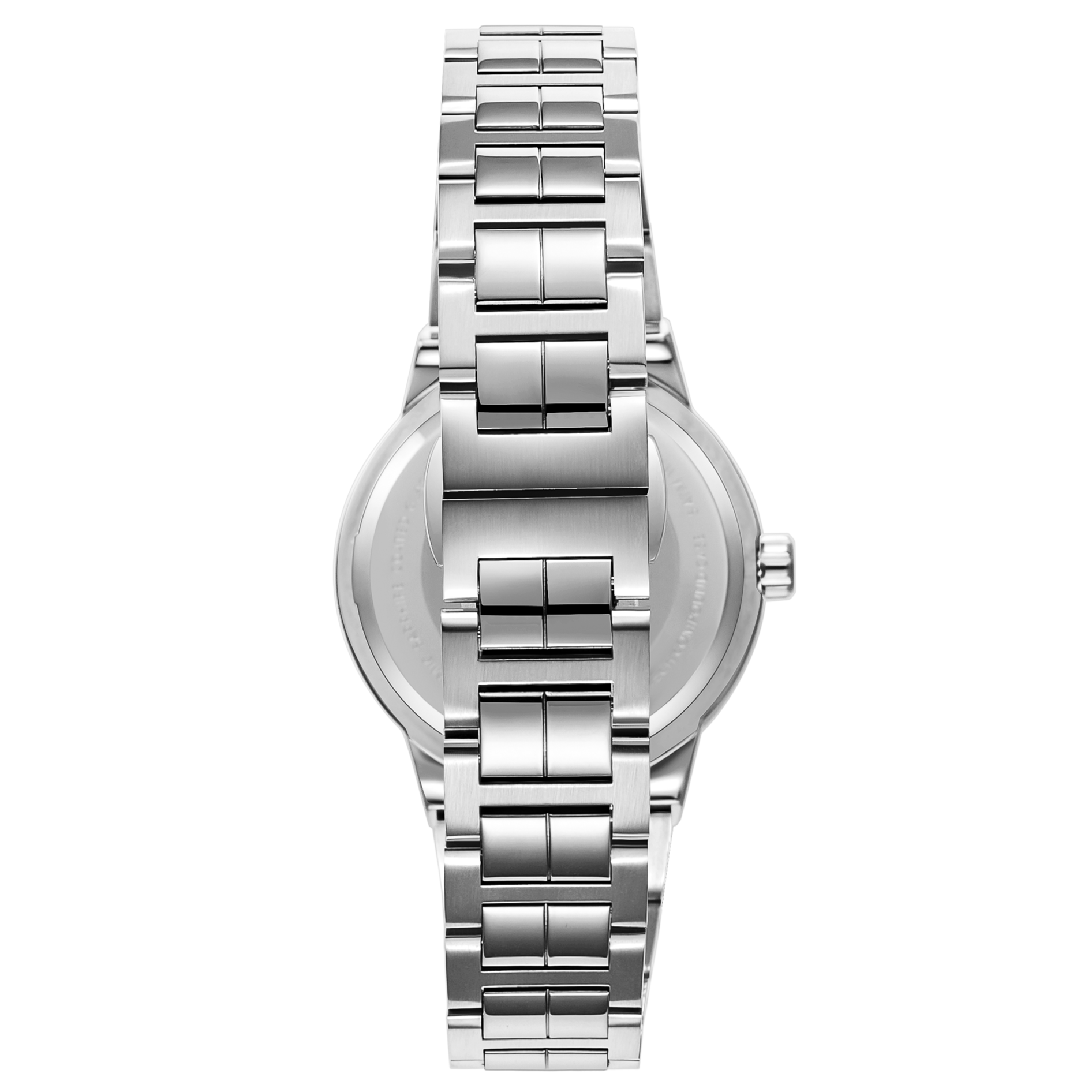 Уровень водозащиты 50 метров (5 ATM) позволяет носить часы во время повседневных водных процедур, таких как умывание или приём душа, однако стоит избегать их использования при плавании. Браслет из нержавеющей стали с удобной раскладной застёжкой дарит комфорт и уверенность в том, что часы будут надёжно закреплены на вашем запястье. Циркониевые вставки добавляют часам блеска и изысканности, превращая их в настоящее украшение. Стальной браслет на раскладной застёжкеРаскладная застёжкаТакой тип застёжки используется только на браслетах из металла. Она никогда не раскрывается полностью, происходит разделение на 2 и более частей. Раскладывающая застёжка снизит вероятность потери часов к минимуму..