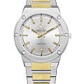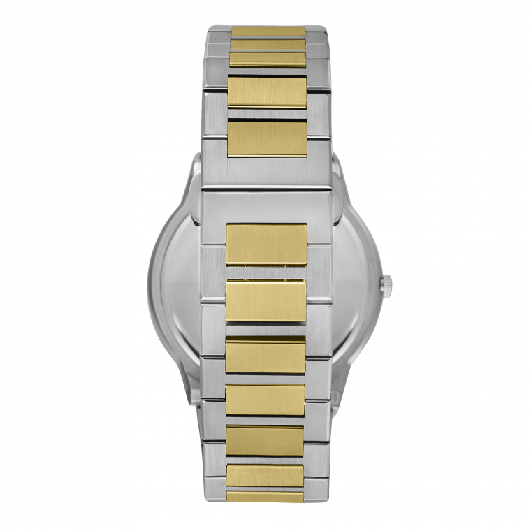 БезельБезельВнешний ободок, закрепляющий стекло. В спортивных часах так называется поворотное кольцо с делениями на циферблате, выполняет роль таймера – замеряет отрезки времени на шкале. Неподвижный безель – элемент декора. Однонаправленно вращающийся безель на дайверских часах позволяет фиксировать моменты погружения и выныривания на поверхность. стальной с IP-покрытиемIP-покрытиеМетод ионного напыления. Демонстрирует повышенную устойчивость к истиранию, окислению и химическим веществам. Под воздействием высокого давления и температуры около 1500°C молекулы металла надёжно соединяются с частицами корпуса часов., что придаёт им элегантный вид. Диаметр корпуса составляет 41 мм, что делает их удобными для запястья. Минеральное стеклоМинеральное стеклоМинеральное стекло представляет собой искусственно выращенный минерал кварца. Такое стекло отличается особой устойчивостью к повреждениям и царапинам. Уступает по некоторым качествам сапфировому стеклу. с сапфировым покрытием защищает дисплей от царапин и обеспечивает долговечность.