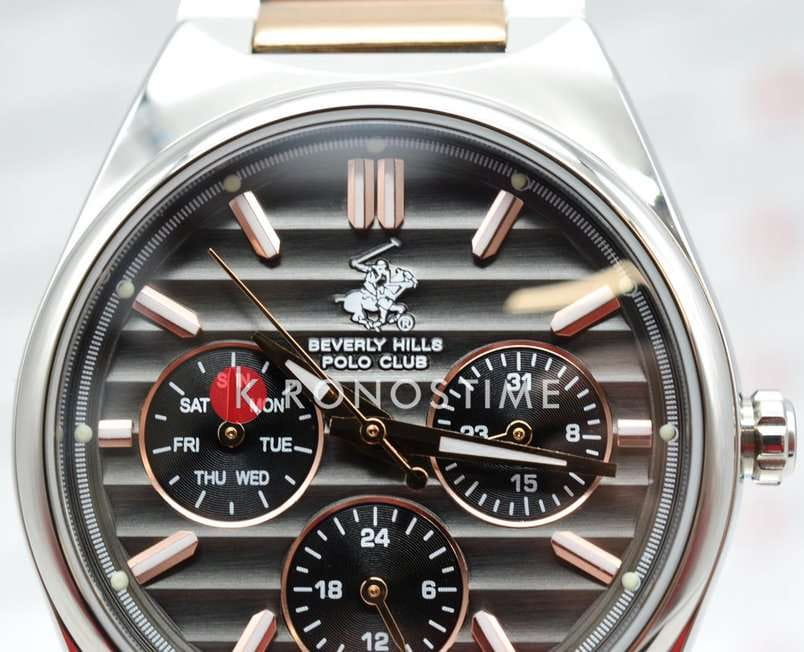 Beverly Hills Polo Club BP3746C.360 – элегантные женские часы, сочетающие стильный дизайн и высокую функциональность. Корпус диаметром 34 мм выполнен из суперметалла, обеспечивающего прочность и долговечность. Циферблат украшен, и защищён минеральным стекломМинеральное стеклоМинеральное стекло представляет собой искусственно выращенный минерал кварца. Такое стекло отличается особой устойчивостью к повреждениям и царапинам. Уступает по некоторым качествам сапфировому стеклу., устойчивым к царапинам. Часы оснащены точным кварцевым механизмом, гарантирующим надёжное отображение времени. Браслет из нержавеющей стали с PVD-покрытиемPVDУльтратонкое покрытие наносится в технике вакуумного напыления, сочетает в себе нитрид титана особой прочности со слоем золота или оксида хрома. Несёт в себе декоративную или защитную функцию. на застёжке-бабочке с кнопкамиЗастёжка "бабочка"Такой вид застёжки дополняется предохранителями, помогающими избежать случайного раскрытия браслета. Обладают изящным исполнением. , обеспечивающей комфортное ношение и надёжную фиксацию на запястье. Водозащита до 50 метров (5 ATM) позволяет использовать часы в повседневной жизни, включая кратковременное погружение в воду.