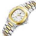 Американские женские часы Beverly Hills Polo Club BP3780X.230 - это стильный женский аксессуар, который сочетает элегантный дизайн и практичность. Корпус выполнен из нержавеющей стали серебристого цвета, диаметром 33,5 мм, что обеспечивает долговечность и утончённый внешний вид. Надежное минеральное стеклоМинеральное стеклоМинеральное стекло представляет собой искусственно выращенный минерал кварца. Такое стекло отличается особой устойчивостью к повреждениям и царапинам. Уступает по некоторым качествам сапфировому стеклу. с сапфировым покрытием защищает циферблат от царапин и обеспечивает долговечность. Метки в виде штрихов, в позиции "6 часов" инкрустирован синтетический бриллиант. Неподвижный безельБезельВнешний ободок, закрепляющий стекло. В спортивных часах так называется поворотное кольцо с делениями на циферблате, выполняет роль таймера – замеряет отрезки времени на шкале. Неподвижный безель – элемент декора. Однонаправленно вращающийся безель на дайверских часах позволяет фиксировать моменты погружения и выныривания на поверхность. с IP-покрытиемIP-покрытиеМетод ионного напыления. Демонстрирует повышенную устойчивость к истиранию, окислению и химическим веществам. Под воздействием высокого давления и температуры около 1500°C молекулы металла надёжно соединяются с частицами корпуса часов. золотистого цвета. Модель оснащена кварцевым механизмом, обеспечивающим высокую точность хода. Стальной браслет на застёжке-бабочке с кнопкамиЗастёжка "бабочка"Такой вид застёжки дополняется предохранителями, помогающими избежать случайного раскрытия браслета. Обладают изящным исполнением. обеспечивает комфортное ношение. Стрелки и метки оснащены люминесцентным покрытиемЛюминесцентное покрытиеПозволяет считывать показания времени в темноте. Производители наносят на стрелки, часовые индексы, безель или поверхность циферблата светонакопительный состав, дающий холодное свечение., обеспечивающим отличную видимость даже при слабом освещении. Окошко даты находится в положении 3 часа. Водозащита 30 метров позволит защитить корпус от случайных брызг или капель дождя. Эта модель – отличный выбор для тех, кто ищет сочетание стиля, качества и функциональности. Часы станут не только полезным аксессуаром, но и выразительным элементом вашего имиджа.