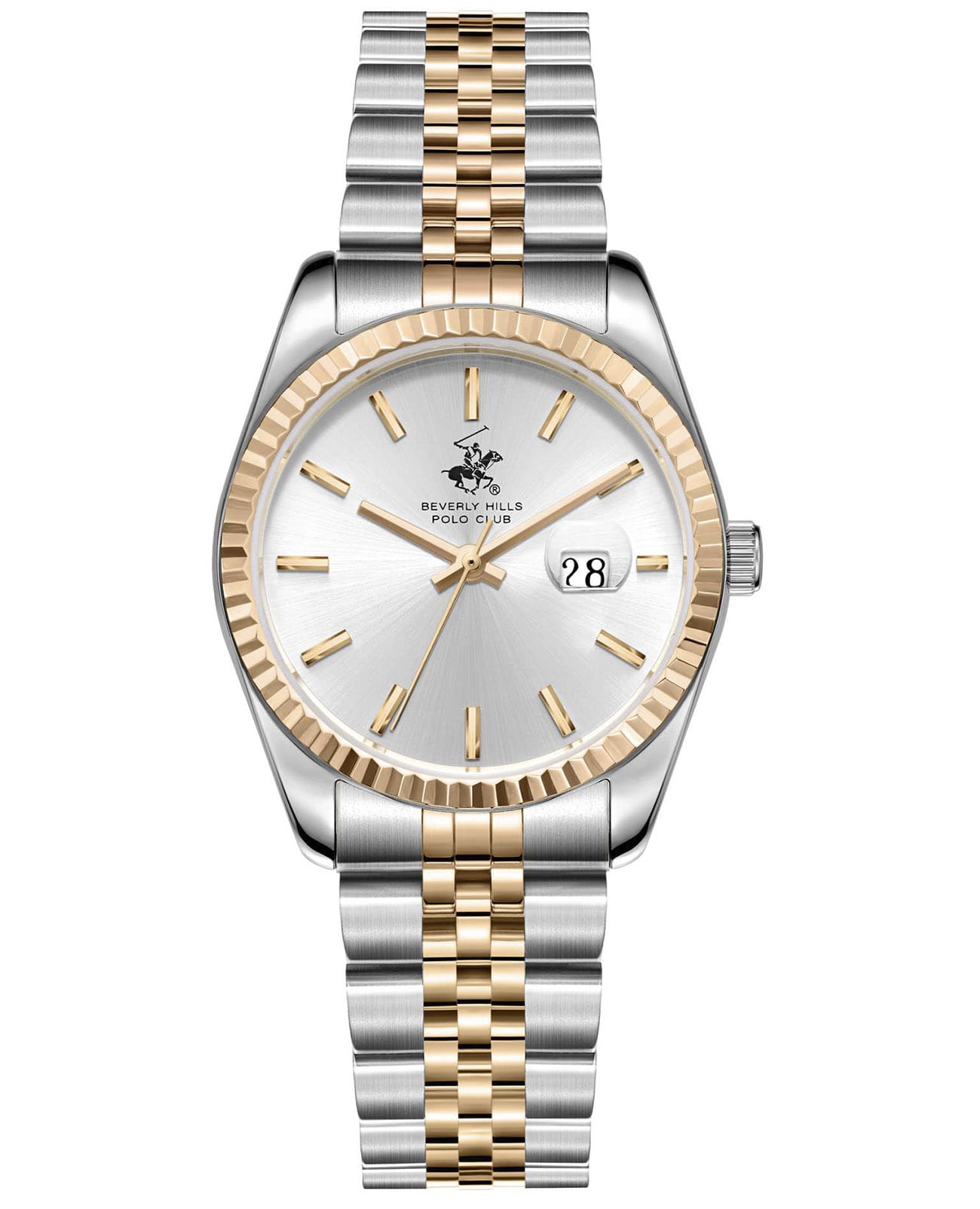 Женские кварцевые часы Beverly Hills Polo Club — это аксессуар, подчеркивающий индивидуальность и элегантность. Корпус диаметром 31 мм выполнен из нержавеющей стали. безельБезельВнешний ободок, закрепляющий стекло. В спортивных часах так называется поворотное кольцо с делениями на циферблате, выполняет роль таймера – замеряет отрезки времени на шкале. Неподвижный безель – элемент декора. Однонаправленно вращающийся безель на дайверских часах позволяет фиксировать моменты погружения и выныривания на поверхность. с IP-покрытиемIP-покрытиеМетод ионного напыления. Демонстрирует повышенную устойчивость к истиранию, окислению и химическим веществам. Под воздействием высокого давления и температуры около 1500°C молекулы металла надёжно соединяются с частицами корпуса часов. цвета розового золота. Циферблат серебристого цвета оформлен штрихами, стрелками и окошком даты в положении 3 часов. Циферблат защищён минеральным стекломМинеральное стеклоМинеральное стекло представляет собой искусственно выращенный минерал кварца. Такое стекло отличается особой устойчивостью к повреждениям и царапинам. Уступает по некоторым качествам сапфировому стеклу. с сапфировым покрытием. Часы оснащены стальным браслетом с частичным IP-покрытиемIP-покрытиеМетод ионного напыления. Демонстрирует повышенную устойчивость к истиранию, окислению и химическим веществам. Под воздействием высокого давления и температуры около 1500°C молекулы металла надёжно соединяются с частицами корпуса часов. на застёжке «бабочка» с кнопкамиЗастёжка "бабочка"Такой вид застёжки дополняется предохранителями, помогающими избежать случайного раскрытия браслета. Обладают изящным исполнением. . Водонепроницаемость 30 м позволяет использовать часы в повседневных условиях. Идеальный выбор для тех, кто ценит американское качество и универсальный дизайн.