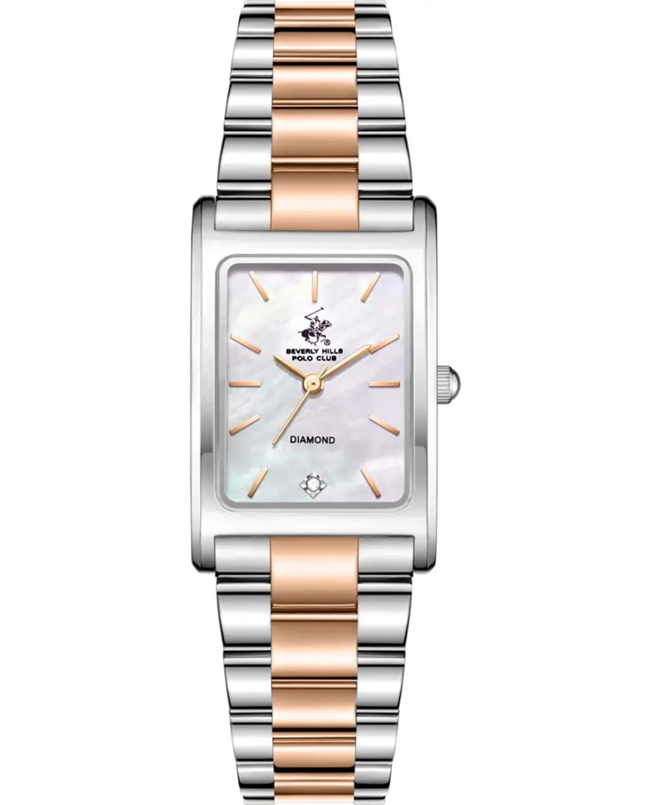Женские кварцевые часы Beverly Hills Polo Club — это изысканный аксессуар, подчеркивающий индивидуальность и элегантность. Корпус размером 22,5×34,5 мм выполнен из стали 316L. Циферблат перламутрового цвета оформлен штрихами, стрелками и инкрустирован одним синтетическим бриллиантом. Циферблат защищён минеральным стекломМинеральное стеклоМинеральное стекло представляет собой искусственно выращенный минерал кварца. Такое стекло отличается особой устойчивостью к повреждениям и царапинам. Уступает по некоторым качествам сапфировому стеклу. с сапфировым покрытием. Часы оснащены стальным браслетом из стали 316L с частичным IP-покрытиемIP-покрытиеМетод ионного напыления. Демонстрирует повышенную устойчивость к истиранию, окислению и химическим веществам. Под воздействием высокого давления и температуры около 1500°C молекулы металла надёжно соединяются с частицами корпуса часов. на застёжке «бабочка» с кнопкамиЗастёжка "бабочка"Такой вид застёжки дополняется предохранителями, помогающими избежать случайного раскрытия браслета. Обладают изящным исполнением. . Водонепроницаемость 30 м позволяет использовать часы в повседневных условиях. Идеальный выбор для тех, кто ценит американское качество и универсальный дизайн.
