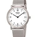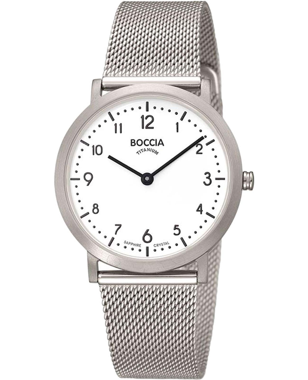 Женские наручные часы Boccia Titanium 3335-03 с надёжным кварцевым механизмом. Корпус часов изготовлен из титана. Сапфировое стеклоСапфировое стеклоПрочный и надёжный материал из кристалла сапфира синтетического происхождения, характеризующийся особой твёрдостью и устойчивостью к царапинам и повреждениям. устойчивое к мелким механическим повреждениям. Класс водозащиты: 50 метров, позволит защитить корпус от случайных брызг или капель дождя. Стальной браслет миланского плетения на раскладном замкеРаскладной замокДанный вариант застежки используется только на часах с металлическим браслетом. Отличительная особенность такого крепления в том, что длина браслета становится универсальной и вы можете самостоятельно отрегулировать нужный вам размер – застежка просто двигается по браслету часов..