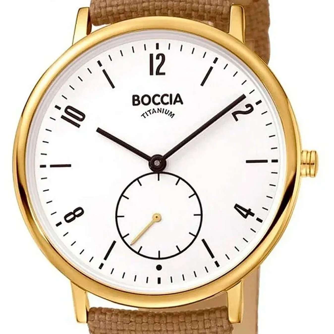 Часы Boccia Titanium 3350-04 представляют собой сочетание изысканного дизайна и современных технологий, создающих идеальный аксессуар для тех, кто ценит стиль. Эти часы оснащены надежным кварцевым механизмом, который обеспечивает безупречную точность хода. Корпус часов изготовлен из прочного титана с PVD-покрытиемPVDУльтратонкое покрытие наносится в технике вакуумного напыления, сочетает в себе нитрид титана особой прочности со слоем золота или оксида хрома. Несёт в себе декоративную или защитную функцию. диаметром 45 мм, что обеспечивает не только долговечность, но и элегантность внешнего вида. Минеральное стеклоМинеральное стеклоМинеральное стекло представляет собой искусственно выращенный минерал кварца. Такое стекло отличается особой устойчивостью к повреждениям и царапинам. Уступает по некоторым качествам сапфировому стеклу., используемое в конструкции этих часов, отличается повышенной устойчивостью к царапинам и превосходной прозрачностью, гарантируя, что циферблат всегда останется чистым и легко читаемым. Тканевый ремешок на кожаной основе с классической застежкой обеспечивает комфортное ношение. Boccia - это выбор тех, кто ценит качество, стиль и безупречный дизайн.