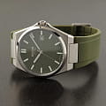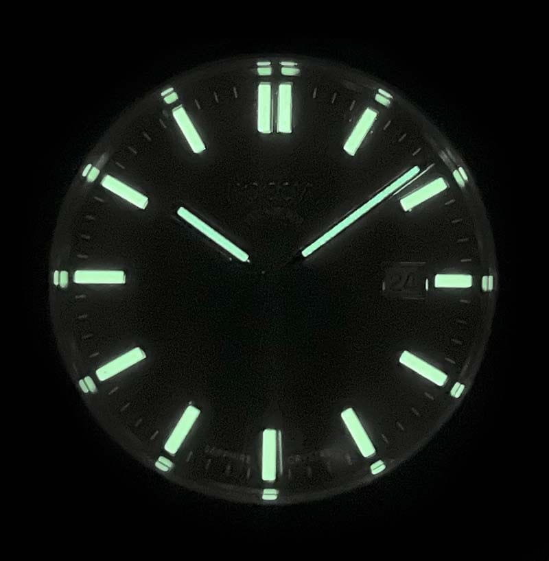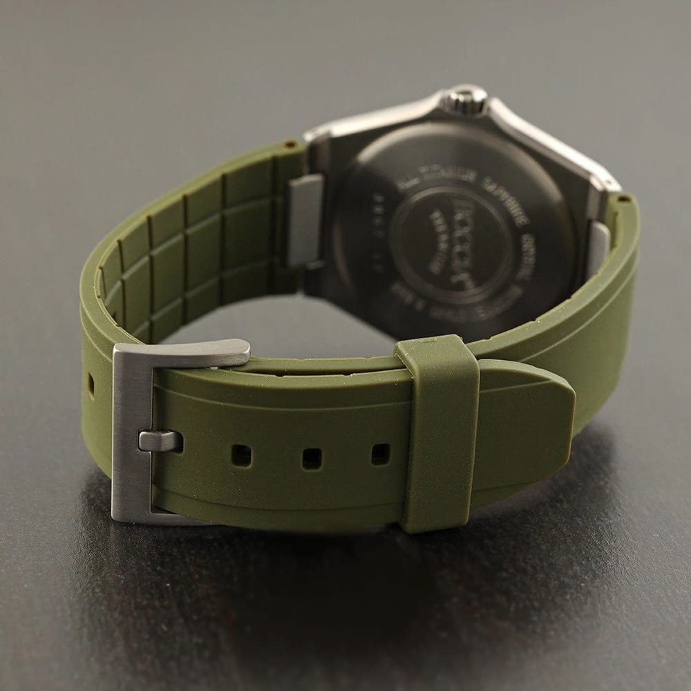 Каучуковый ремешок с традиционной застежкой обеспечивает комфорт и удобство в эксплуатации, а стрелки и метки с люминесцентным покрытиемЛюминесцентное покрытиеПозволяет считывать показания времени в темноте. Производители наносят на стрелки, часовые индексы, безель или поверхность циферблата светонакопительный состав, дающий холодное свечение. облегчают чтение времени даже в условиях низкой освещенности. Окошко даты, расположенное на отметке «три часа», поможет вам всегда оставаться в курсе текущих дел.