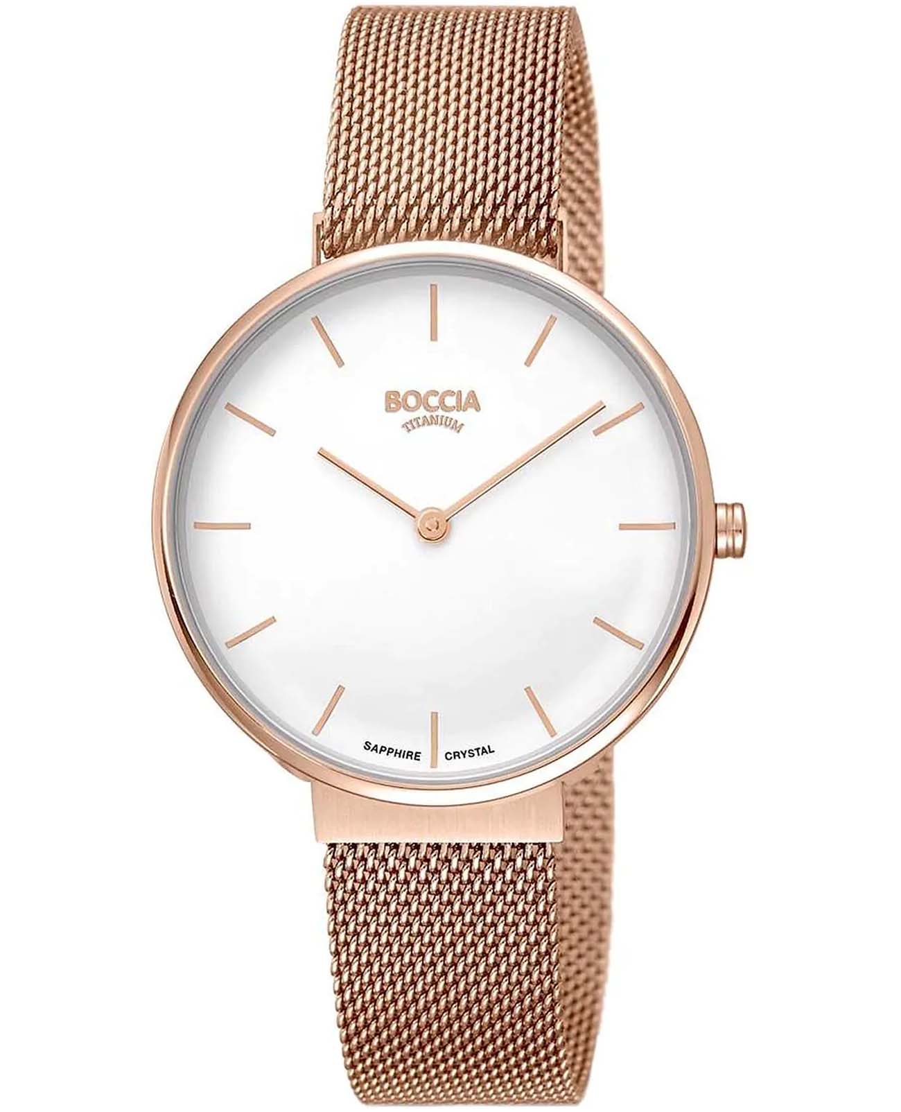 Женские наручные часы Boccia Titanium 3327-11 с надёжным кварцевым механизмом. Корпус часов изготовлен из титана с PVD-покрытиемPVDУльтратонкое покрытие наносится в технике вакуумного напыления, сочетает в себе нитрид титана особой прочности со слоем золота или оксида хрома. Несёт в себе декоративную или защитную функцию.. Сапфировое стеклоСапфировое стеклоПрочный и надёжный материал из кристалла сапфира синтетического происхождения, характеризующийся особой твёрдостью и устойчивостью к царапинам и повреждениям. устойчивое к мелким механическим повреждениям. Класс водозащиты: 30 метров, позволит защитить корпус от случайных брызг или капель дождя. Стальной браслет миланского плетения на раскладном замкеРаскладной замокДанный вариант застежки используется только на часах с металлическим браслетом. Отличительная особенность такого крепления в том, что длина браслета становится универсальной и вы можете самостоятельно отрегулировать нужный вам размер – застежка просто двигается по браслету часов.