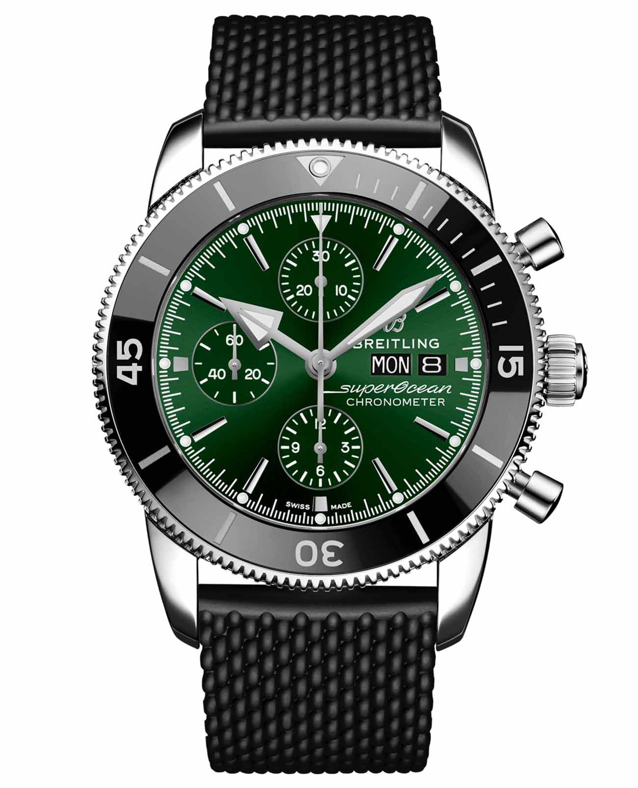 Вдохновленный оригинальным Superocean 1950-х годов, Superocean Heritage сочетает в себе культовые черты дизайна с современными нотками. Спортивный и элегантный Superocean Heritage является истинным воплощением морского стиля. Часы Superocean Heritage, оснащенные культовыми стрелками треугольной формы, а также однонаправленным безелем БезельВнешний ободок, закрепляющий стекло. В спортивных часах так называется поворотное кольцо с делениями на циферблате, выполняет роль таймера – замеряет отрезки времени на шкале. Неподвижный безель – элемент декора. Однонаправленно вращающийся безель на дайверских часах позволяет фиксировать моменты погружения и выныривания на поверхность. с полированным керамическим кольцом, представляют собой элегантные часы для дайверов. Часы Superocean Heritage Chronograph 44, выполненные из различных материалов, включая нержавеющую сталь и красное золото 18 карат, оснащены цветными циферблатами. Часы Superocean Heritage, оснащенные калибром Breitling Caliber 13, сертифицированным Сертификат COSCСертификат COSCОфициальный сертификат, подтверждающий то, что часы ходят с особо высокой точностью. Для получения документа часы подвергаются тестовым испытаниям, разработанным швейцарским институтом тестирования хронометров COSC. Допустимая норма для механических часов -4/+6 секунд в день, для кварцевых моделей +/- 0,07 секунд в день., поставляются либо с соответствующим браслетом из сетки, либо с каучуковым ремешком в стиле “сетка” с откидной пряжкой.
