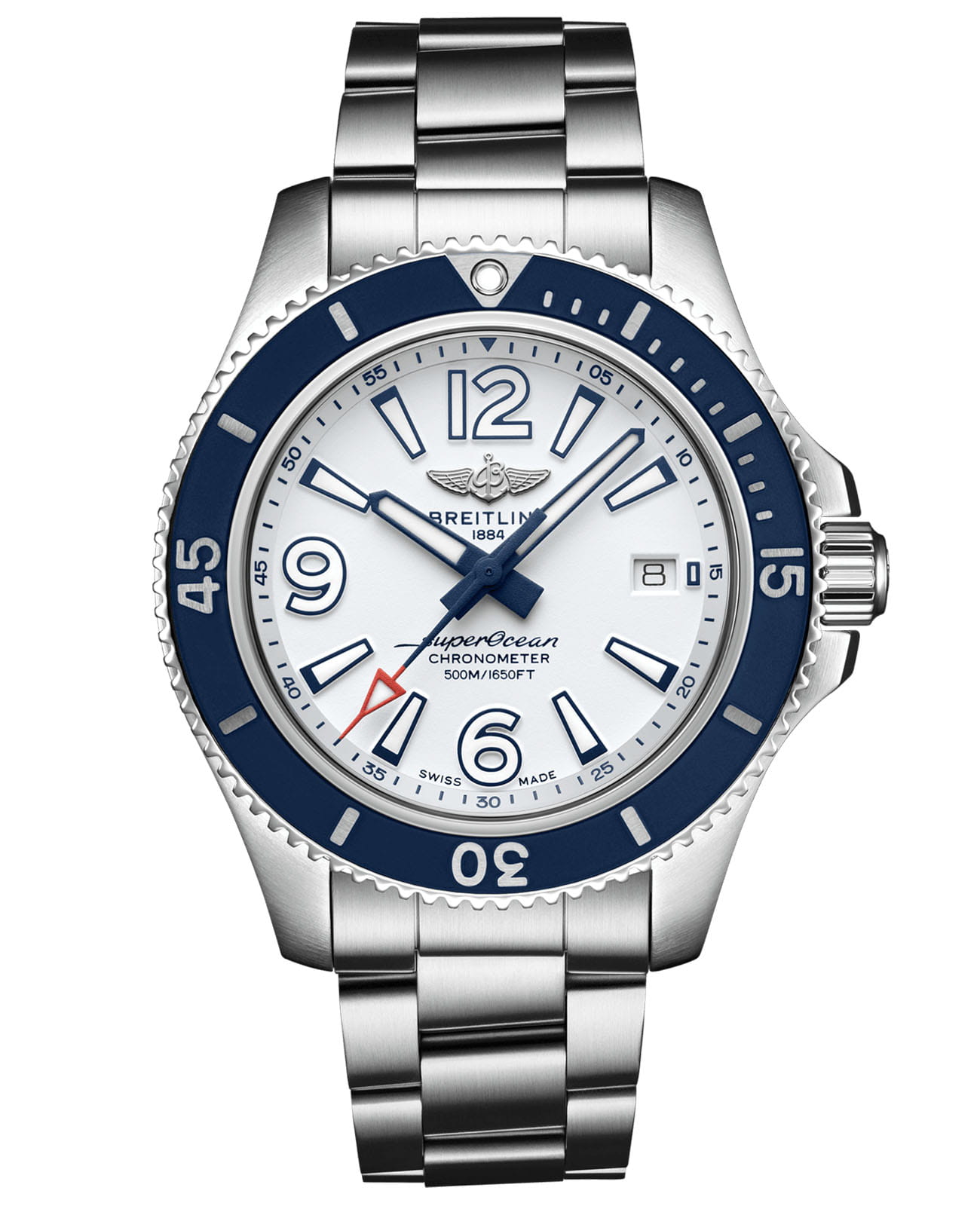 Современная, спортивная и яркая модель Superocean Automatic 42 совмещает в себе прекрасные технические характеристики с современным дизайном – она изящно выглядит на любом запястье. Эти часы не боятся ничего: в них можно погружаться под воду, заниматься серфингом или делать заплывы!