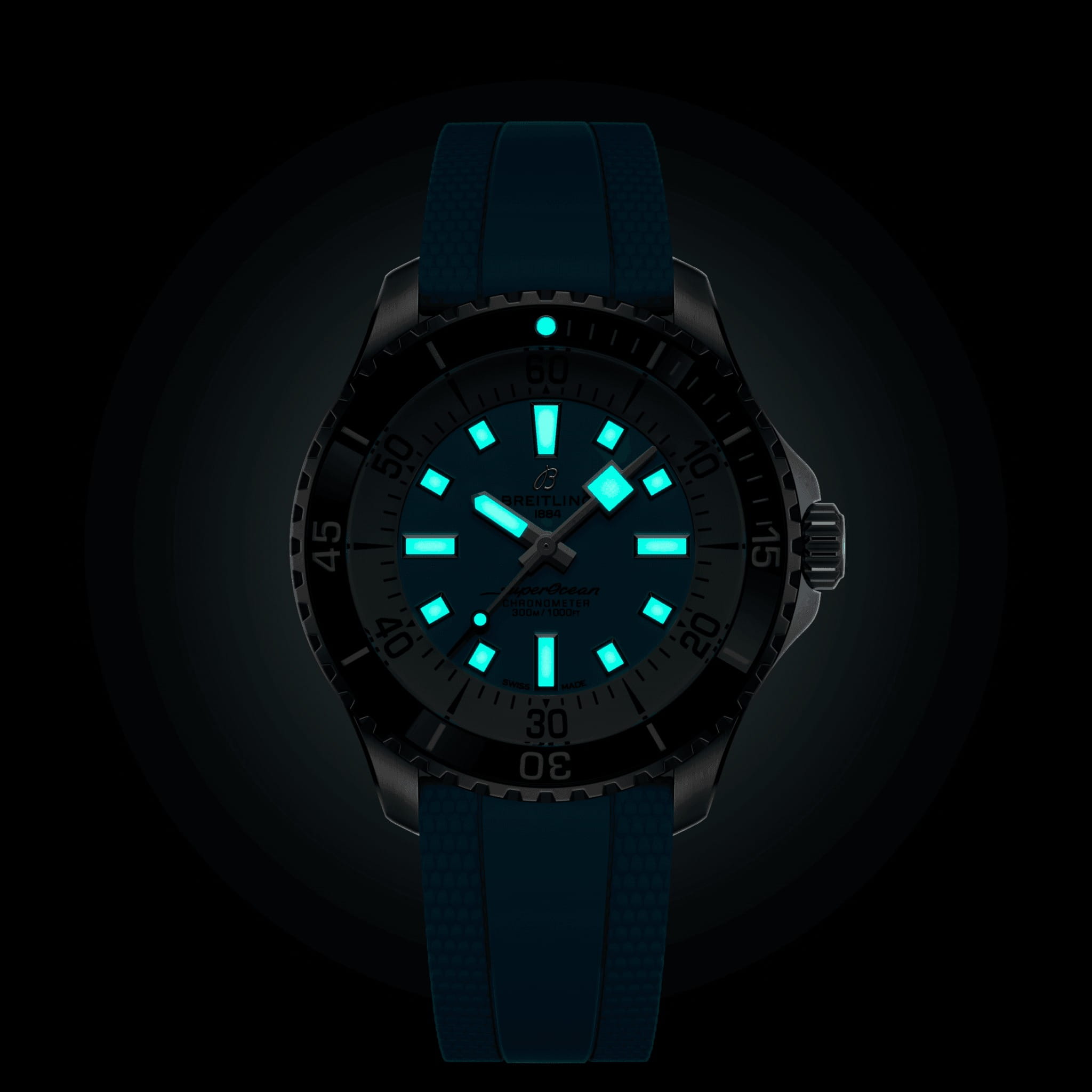 Мужские водонепроницаемые швейцарские часы Breitling Superocean Automatic 44 A17376211L2S2, механический механизм (автоматический калибр) с высокой точностью. Сапфировое стеклоСапфировое стеклоПрочный и надёжный материал из кристалла сапфира синтетического происхождения, характеризующийся особой твёрдостью и устойчивостью к царапинам и повреждениям. устойчивое к появлению царапин, обладающее высокой прозрачностью. Класс водозащиты: 300 метров, позволит плавать, нырять и заниматься другими водными видами спорта. Корпус часов изготовлен из нержавеющей стали. Силиконовый ремешок с раскладной застёжкойРаскладная застёжкаТакой тип застёжки используется только на браслетах из металла. Она никогда не раскрывается полностью, происходит разделение на 2 и более частей. Раскладывающая застёжка снизит вероятность потери часов к минимуму.. Стрелки и метки с люминесцентным покрытиемЛюминесцентное покрытиеПозволяет считывать показания времени в темноте. Производители наносят на стрелки, часовые индексы, безель или поверхность циферблата светонакопительный состав, дающий холодное свечение.. Широкие стрелки и индексы с люминесцентным покрытиемЛюминесцентное покрытиеПозволяет считывать показания времени в темноте. Производители наносят на стрелки, часовые индексы, безель или поверхность циферблата светонакопительный состав, дающий холодное свечение. обеспечивают легкую читаемость под водой. Этот специальный онлайн-эксклюзив Breitling отличается привлекательным голубым циферблатом. Поворотный безельБезельВнешний ободок, закрепляющий стекло. В спортивных часах так называется поворотное кольцо с делениями на циферблате, выполняет роль таймера – замеряет отрезки времени на шкале. Неподвижный безель – элемент декора. Однонаправленно вращающийся безель на дайверских часах позволяет фиксировать моменты погружения и выныривания на поверхность. из стали с керамической инкрустацией, защищенный от царапин, никогда не изнашивается и не выцветает. Лучше всего то, что это больше не просто часы для дайвинга — занимайтесь с ними серфингом, плавайте с ними, заходите с ними в пляжный бар, а затем надевайте их на ужин. Superocean идеально сочетает ностальгию по своему наследию со свежим внешним видом.