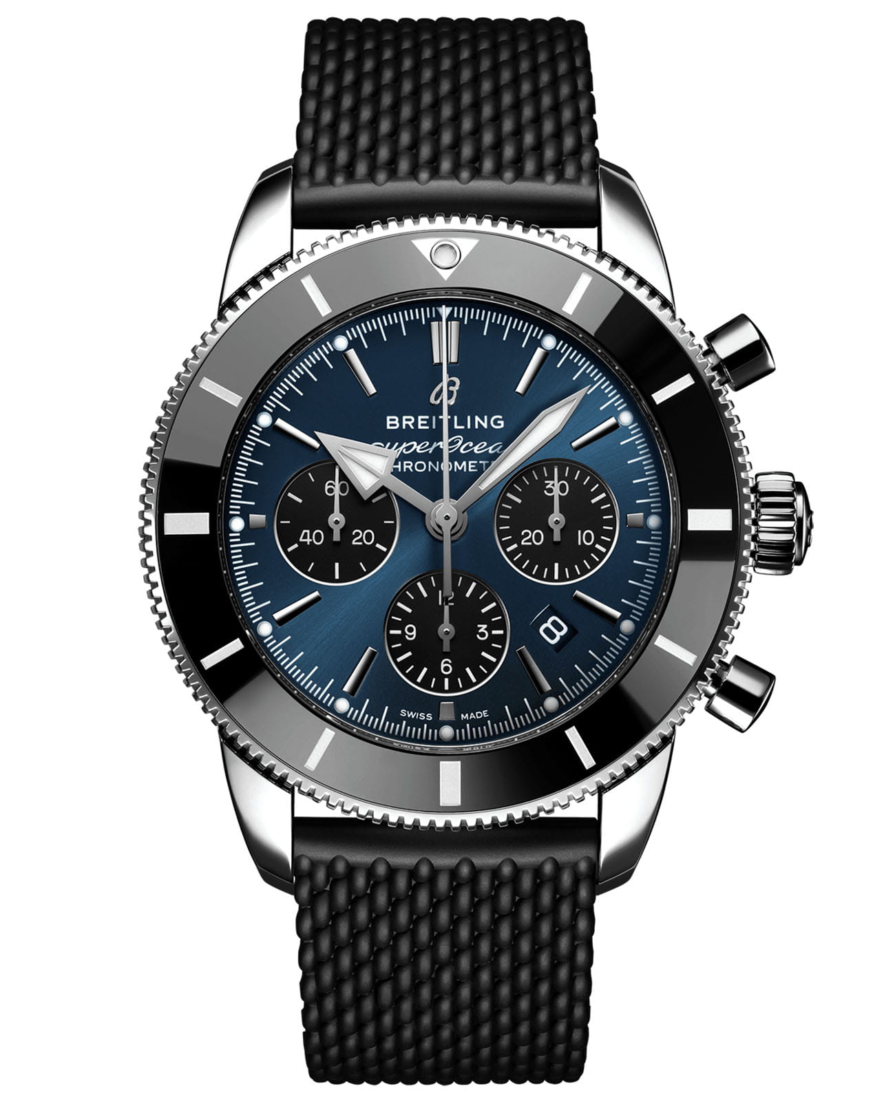 Мужские швейцарские часы Breitling Superocean Heritage B01 Chronograph 44 AB0162121C1S1, механический механизм с высокой точностью Breitling Manufacture Caliber 01, сертифицированный Швейцарским институтом официального тестирования хронометров (COSC). Выпуклое сапфировое стекло устойчивое к появлению царапин, обладающее высокой прозрачностью и антибликовым покрытием с обеих сторон.