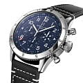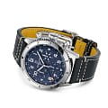 На массивном корпусе диаметром 46 мм напротив метки «3 часа» выделяется крупная заводная головка. Рифление на безеле обеспечивает надежный захват, а отстрочка на ремешках из телячьей кожи напоминает отделку классического летного снаряжения.