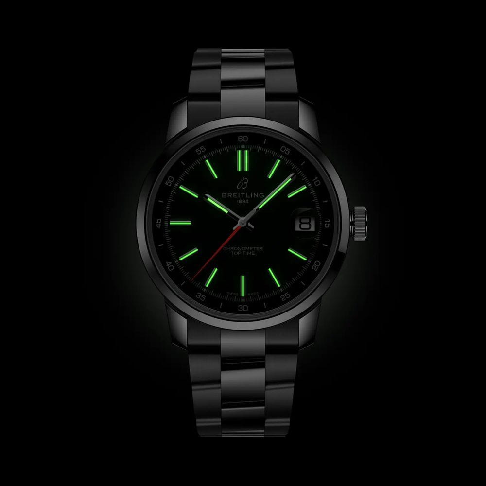 Breitling Top Time B31 AB3113171L1A1 — стильная новинка 2025 года с характерной винтажной эстетикой и современным механизмом собственного производства. Корпус диаметром 38 мм выполнен из нержавеющей стали с полированной отделкой. Прозрачная задняя крышка позволяет наблюдать за работой механизма. Циферблат защищён выпуклым сапфировым стекломСапфировое стеклоПрочный и надёжный материал из кристалла сапфира синтетического происхождения, характеризующийся особой твёрдостью и устойчивостью к царапинам и повреждениям. с двухсторонним антибликовым покрытиемАнтибликовое покрытиеСлой оксида металла в 0,13-0,3 микрон, благодаря которому стекло часов не бликует и не отражает свет. Антибликовое покрытие уменьшает отражение света в 10 раз, обеспечивая отличную читаемость показателей циферблата.. Зелёный циферблат с контрастным внутренним кольцом и яркой оранжевой секундной стрелкой оформлен в узнаваемом стиле коллекции Top Time. Стрелки и часовые метки имеют люминесцентное покрытиеЛюминесцентное покрытиеПозволяет считывать показания времени в темноте. Производители наносят на стрелки, часовые индексы, безель или поверхность циферблата светонакопительный состав, дающий холодное свечение., обеспечивающее отличную читаемость. Внутри установлен автоматический калибр Breitling B31, отображающий часы, минуты, малую секунду и дату. Механизм обеспечивает запас хода до 78 часов и работает с частотой 28 800 полуколебаний в час. Часы укомплектованы стальным браслетом на раскладной застёжкойРаскладная застёжкаТакой тип застёжки используется только на браслетах из металла. Она никогда не раскрывается полностью, происходит разделение на 2 и более частей. Раскладывающая застёжка снизит вероятность потери часов к минимуму.. Водонепроницаемость 100 метров делает модель универсальной для повседневного использования. Top Time B31 AB3113171L1A1 — гармония винтажного дизайна и инновационного часового мастерства.