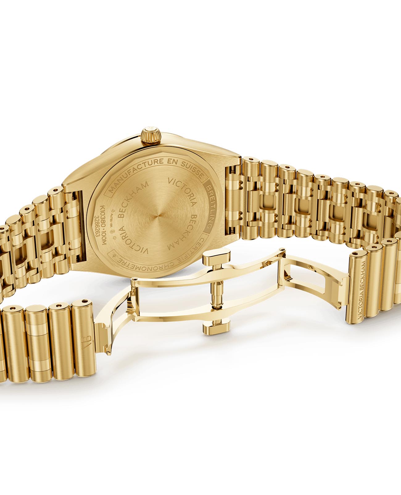 Женские швейцарские часы Breitling Chronomat Automatic 36 Victoria Beckham K103801A1A1K1 с надёжным автоматическим механизмом, выпущенные лимитированной серией всего из 1500 экземпляров в сотрудничестве с модным домом Victoria Beckham. Сапфировое стеклоСапфировое стеклоПрочный и надёжный материал из кристалла сапфира синтетического происхождения, характеризующийся особой твёрдостью и устойчивостью к царапинам и повреждениям. устойчивое к мелким механическим повреждениям. Корпус и браслет часов изготовлены из желтого 18-каратного золота18-каратное золотоОбозначение по каратной системе пробирования, оно показывает, сколько драгоценного металла содержится в изделии. 18 карат - в составе 75% чистого золота, соответствует 750 пробе.