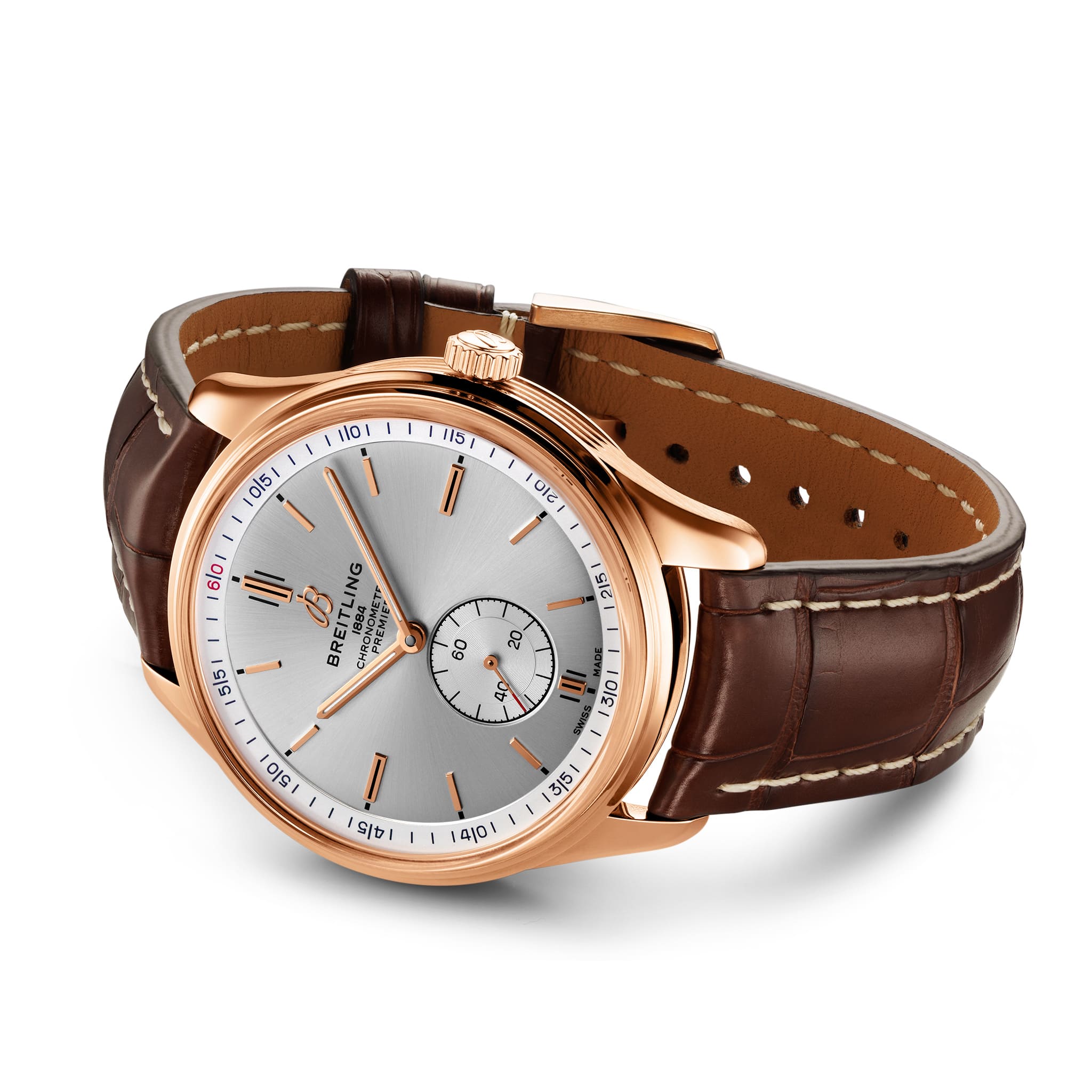 Модель предлагается в комплекте с браслетом или ремешком из телячьей кожи нубук или кожи аллигатора с классической или раскладной застежкой. Внутри корпуса спрятан калибр Breitling Caliber 37, сертифицированный Швейцарским институтом официального тестирования хронометров (COSC).