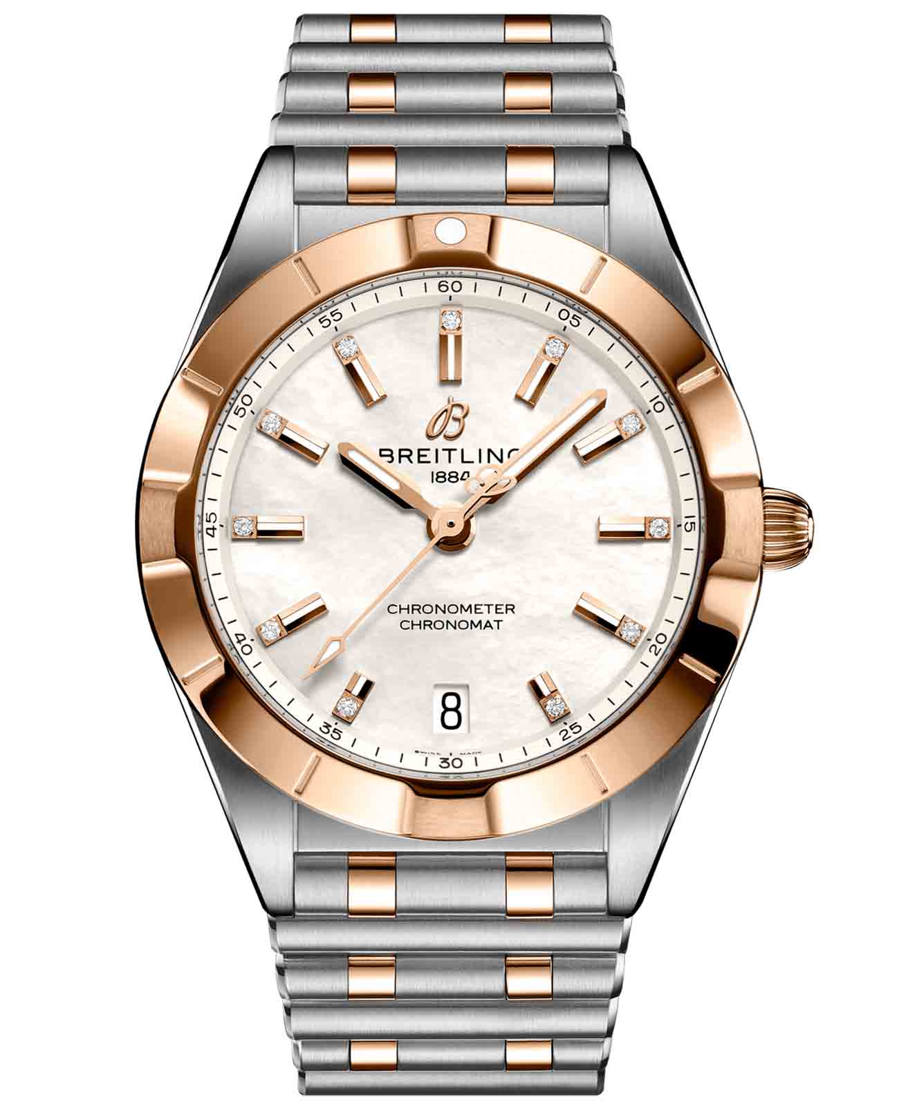 Женские швейцарские кварцевые часы Breitling Chronomat 32 U77310101A2U1, механический механизм (автоматический калибр) с высокой точностью. Сапфировое стеклоСапфировое стеклоПрочный и надёжный материал из кристалла сапфира синтетического происхождения, характеризующийся особой твёрдостью и устойчивостью к царапинам и повреждениям. с антибликовым покрытием устойчивое к появлению царапин, обладающее высокой прозрачностью. Класс водозащиты: 100 метров, позволит плавать, нырять и заниматься другими водными видами спорта. Корпус и браслет часов изготовлены из стали и красного 18-каратного золота18-каратное золотоОбозначение по каратной системе пробирования, оно показывает, сколько драгоценного металла содержится в изделии. 18 карат - в составе 75% чистого золота, соответствует 750 пробе.