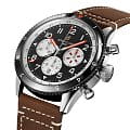 На массивном корпусе диаметром 46 мм напротив метки «3 часа» выделяется крупная заводная головка. Рифление на безеле обеспечивает надежный захват, а отстрочка на ремешках из телячьей кожи напоминает отделку классического летного снаряжения.