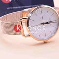 Белый циферблат отражает классический стиль. Стальной браслет миланского плетения стал привлекательной fashion-деталью. Швейцарский кварцевый механизм ETA F05.401. Водонепроницаемость 3 бар. Минеральное стекло. Стрелки с люминесцентной подсветкойЛюминесцентное покрытиеПозволяет считывать показания времени в темноте. Производители наносят на стрелки, часовые индексы, безель или поверхность циферблата светонакопительный состав, дающий холодное свечение.. Цветное PVD-покрытиеPVDУльтратонкое покрытие наносится в технике вакуумного напыления, сочетает в себе нитрид титана особой прочности со слоем золота или оксида хрома. Несёт в себе декоративную или защитную функцию..