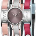 Модель поставляется в комплекте с цветными кожаными ремешками, кнопки позволяют менять его по желанию. Неиспользуемые элементы можно носить как отдельный браслет. Швейцарский кварцевый калибр ETA F05.101 отвечает за высокую точность хода. Закаленное минеральное стекло отличается надёжностью, устойчивостью к царапинам.