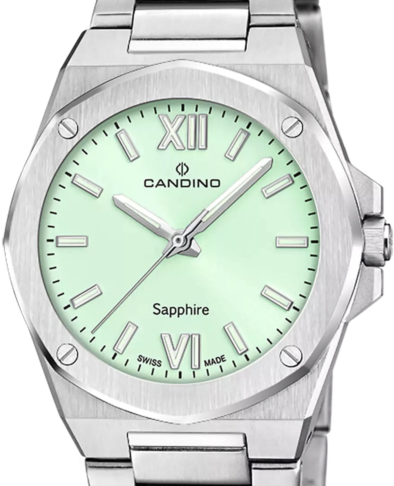 Женские кварцевые часы Candino из коллекции Lady Elegance — это стильный аксессуар, сочетающий швейцарское качество и элегантный дизайн. Корпус диаметром 33,5 мм и толщиной 8 мм выполнен из нержавеющей стали 316L. Циферблат зелёного цвета оформлен индексами и стрелками. Циферблат защищён сапфировым стекломСапфировое стеклоПрочный и надёжный материал из кристалла сапфира синтетического происхождения, характеризующийся особой твёрдостью и устойчивостью к царапинам и повреждениям., устойчивым к царапинам. Механизм — кварцевый, произведённый в Швейцарии. Часы оснащены стальным браслетом с раскладной застёжкойРаскладная застёжкаТакой тип застёжки используется только на браслетах из металла. Она никогда не раскрывается полностью, происходит разделение на 2 и более частей. Раскладывающая застёжка снизит вероятность потери часов к минимуму.. Водонепроницаемость 50 м позволяет использовать часы в повседневных условиях. Гарантия — 2 года. Идеальный выбор для тех, кто ценит точность, красоту и надёжность.