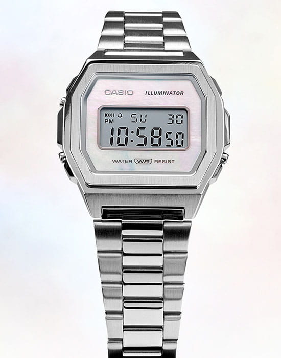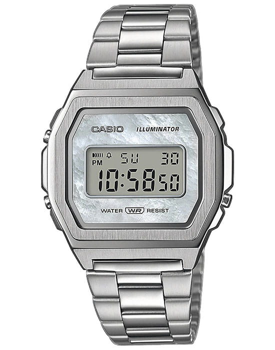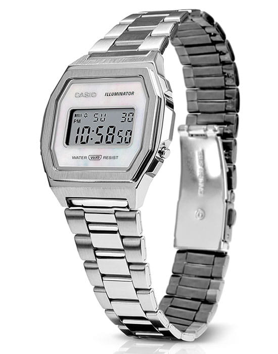 Серебристый аксессуар с фирменным для Casio 8-угольным корпусом будет гармонично смотреться как с деловым пиджаком, так и с повседневной водолазкой. Оригинальности добавляет переливающийся цифровой дисплей. Ударопрочный корпусУдаропрочный корпусМеханизм заключён в корпус, выполненный из современных материалов, устойчивых к ударам, механическим повреждениям и падению с высоты: инновационный пластик, карбон, нержавеющая сталь, титан. и браслет с предохранительной застёжкой сделаны из нержавеющей стали 316L. Надёжное минеральное стекло. Срок работы батарейки - 3 года. Наличие будильника, секундомера, календаря. Светодиодная подсветкаСветодиодная подсветкаСветодиодная или LED-подсветка обеспечивает появление яркого холодного свечения за счёт LED-элементов - маленьких лампочек. Они потребляют минимальное количество энергии, чаще всего можно встретить 1 светодиод, в нижней части циферблата. дисплея. Габариты: 38 x 39,6 x 7,3 мм.