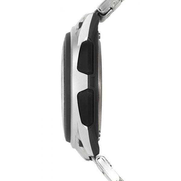 Аккуратный пластиковый корпус надежно соединен с браслетом из нержавеющей стали. Есть записная книжка на 30 имен, таймер и функция мирового времениМировое время Полезное часовое усложнение, отображающее время в основных городах и известных областях по всему миру, оно связано с часовыми поясами, удобно для путешественников и бизнесменов. . Водонепроницаемость составляет 50 WR. Экономная батарейка служит 10 лет.