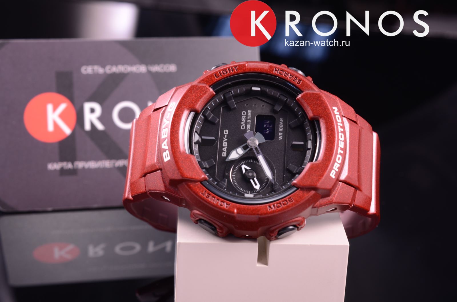 Привлекательно смотрится ударопрочный корпусУдаропрочный корпусМеханизм заключён в корпус, выполненный из современных материалов, устойчивых к ударам, механическим повреждениям и падению с высоты: инновационный пластик, карбон, нержавеющая сталь, титан. цвета тёмно-красный металлик с глянцевым блеском. Модель оснащена усложнением Dual Time, что позволяет отображать время одновременно в двух часовых поясах. Функцию непременно оценят любительницы путешествий. Энергия от батарейки SR726W ( срок службы 2 года) питает японский кварцевый механизм. Включение и выключение звука кнопок. Светодиодная подсветкаСветодиодная подсветкаСветодиодная или LED-подсветка обеспечивает появление яркого холодного свечения за счёт LED-элементов - маленьких лампочек. Они потребляют минимальное количество энергии, чаще всего можно встретить 1 светодиод, в нижней части циферблата. циферблата, стрелки с покрытием NeobriteПодсветка NeobriteИспользование светонакопительных составов на основе сульфида цинка или алюмината стронция, яркий свет можно наблюдать на протяжении 6-10 часов после «зарядки» часов около источника света.. Минеральное стекло. Водонепроницаемость 100 метров. Ежечасный сигнал. Будильник, вечный календарьВечный календарьКлассическое часовое усложнение, представляющее собой календарь, рассчитанный на несколько лет вперёд (стандартно – до 2099 года). Определяет текущую дату, день недели, месяц., таймер, мировое времяМировое время Полезное часовое усложнение, отображающее время в основных городах и известных областях по всему миру, оно связано с часовыми поясами, удобно для путешественников и бизнесменов. – 31 часовой пояс, секундомер, UTCUTCВсемирное кординационное время, не имеющее привязки к географическому положению Гринвича, основывается на атомном отсчёте времени. Регулировка времени осуществляется более точно, чем устаревшее GMT.