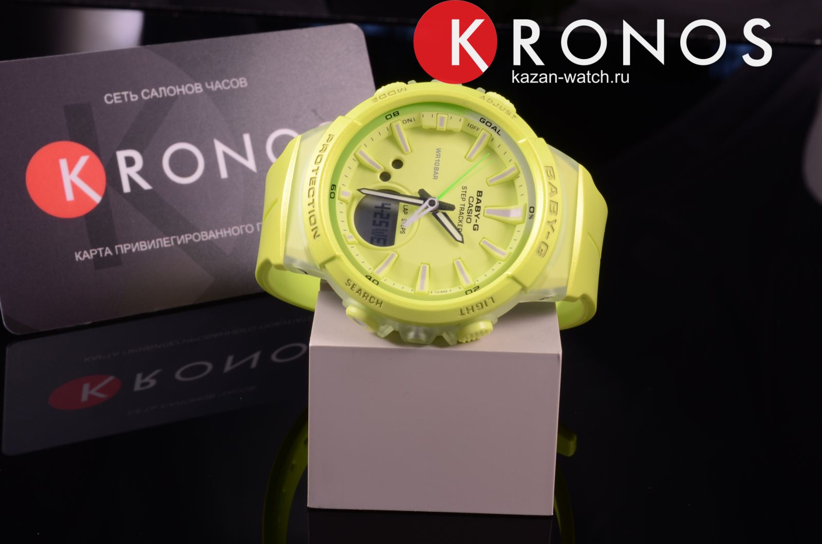Наручные часы в зелёном цвете оснащены шагомером, счётчик измеряет количество шагов от 0 до 999999. Предусмотрена возможность установить цель на день. Размечена специальная шкала вокруг безеляБезельВнешний ободок, закрепляющий стекло. В спортивных часах так называется поворотное кольцо с делениями на циферблате, выполняет роль таймера – замеряет отрезки времени на шкале. Неподвижный безель – элемент декора. Однонаправленно вращающийся безель на дайверских часах позволяет фиксировать моменты погружения и выныривания на поверхность., достижение отметки «Goal» означает, что план выполнен. Ударопрочный корпусУдаропрочный корпусМеханизм заключён в корпус, выполненный из современных материалов, устойчивых к ударам, механическим повреждениям и падению с высоты: инновационный пластик, карбон, нержавеющая сталь, титан. сделан из прочного полимера, устойчив к падению, вибрации. Работу японского кварцевого механизма обеспечивает батарейка, рассчитанная на 2 года. Минеральное закаленное стекло. Светодиодная подсветкаСветодиодная подсветкаСветодиодная или LED-подсветка обеспечивает появление яркого холодного свечения за счёт LED-элементов - маленьких лампочек. Они потребляют минимальное количество энергии, чаще всего можно встретить 1 светодиод, в нижней части циферблата.. Водостойкость 10 бар. Включение и выключение звука кнопок. Автокалендарь, будильник, секундомер, таймер обратного отсчёта. Указание второго часового пояса. Габариты: 42,6 x 45,2 x 13,3 мм.
