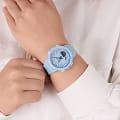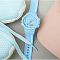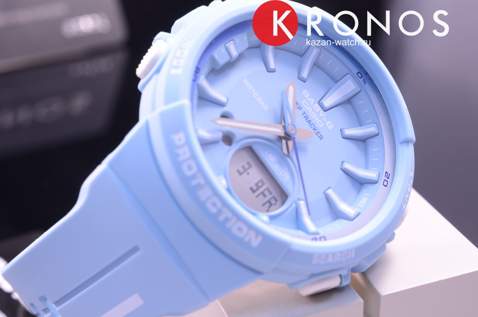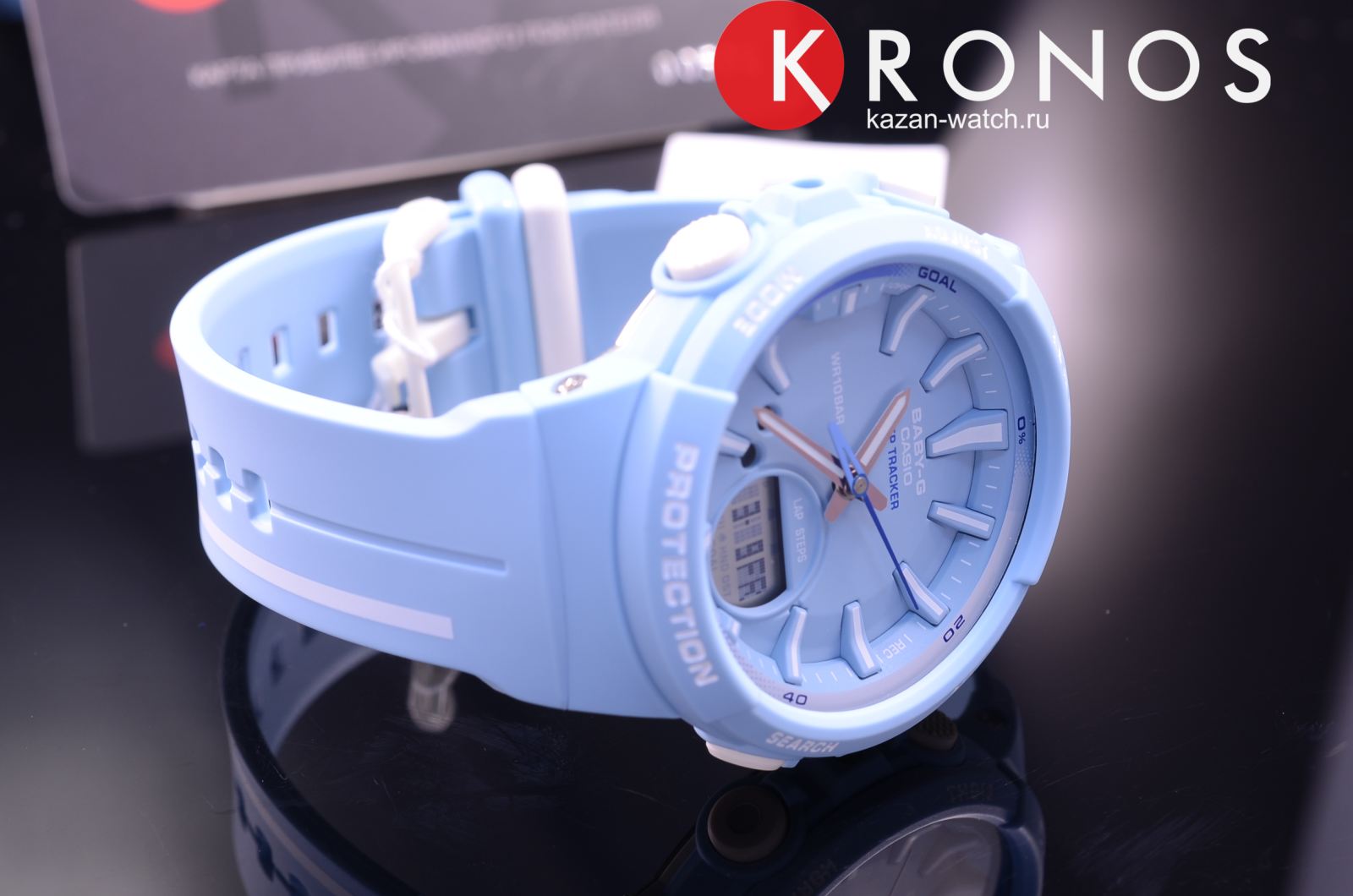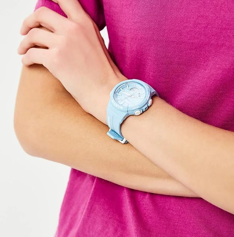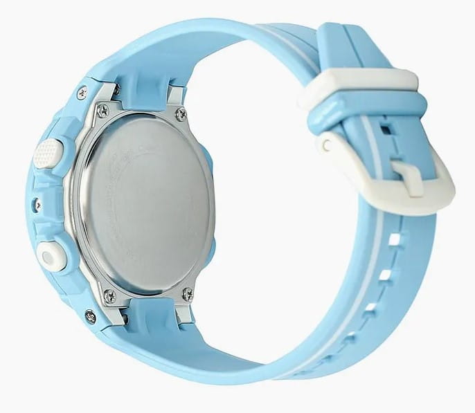 Белые детали выигрышно смотрятся на голубом фоне, стильная модель в спортивном стиле всегда будет на пике популярности. Одной из особенностей аксессуара является шагомерШагомерШагоме́р или педо́метр — измерительный прибор для подсчёта количества сделанных шагов (или пар шагов) при ходьбе или беге., позволяющий ежедневно отслеживать свою физическую активность, измеряет количество шагов от 0 до 999999. Графическое отображение пройденных шагов за последние 5ч. История ежедневных данных за 8 дней, еженедельных данных за 4 недели. Установка цели в диапазоне от 1000 до 50 000. Можно устанавливать цель на определённое количество шагов: вокруг безеляБезельВнешний ободок, закрепляющий стекло. В спортивных часах так называется поворотное кольцо с делениями на циферблате, выполняет роль таймера – замеряет отрезки времени на шкале. Неподвижный безель – элемент декора. Однонаправленно вращающийся безель на дайверских часах позволяет фиксировать моменты погружения и выныривания на поверхность. расположилась специальная разметка, многофункциональная секундная стрелка покажет выполнение плана в процентах. Японский кварцевый механизм с точностью хода +/- 15 секунд в месяц. Срок службы аккумулятора составляет 2 года. Ударопрочный корпусУдаропрочный корпусМеханизм заключён в корпус, выполненный из современных материалов, устойчивых к ударам, механическим повреждениям и падению с высоты: инновационный пластик, карбон, нержавеющая сталь, титан. и браслет из полимерного пластика. Минеральное стеклоМинеральное стеклоМинеральное стекло представляет собой искусственно выращенный минерал кварца. Такое стекло отличается особой устойчивостью к повреждениям и царапинам. Уступает по некоторым качествам сапфировому стеклу. устойчивое к мелким механическим повреждениям. СветодиоднаяСветодиодная подсветкаСветодиодная или LED-подсветка обеспечивает появление яркого холодного свечения за счёт LED-элементов - маленьких лампочек. Они потребляют минимальное количество энергии, чаще всего можно встретить 1 светодиод, в нижней части циферблата. и люминесцентнаяЛюминесцентное покрытиеПозволяет считывать показания времени в темноте. Производители наносят на стрелки, часовые индексы, безель или поверхность циферблата светонакопительный состав, дающий холодное свечение. подсветка. Водонепроницаемость до 10 бар. Включение и выключение звука кнопок. БудильникБудильникБуди́льник — часы, в заданный момент времени подающие звуковой, световой и/или в редких случаях другой сигнал. с функцией повтора, календарь до 2099 года. СекундомерСекундомерСекундоме́р — прибор, способный измерять интервалы времени с точностью до долей секунды. с точностью в 1/100 секунды, таймерТаймерОтсчитывает секунды в обратном направлении в заданном интервале времени.. Габариты: 42,6 x 45,2 x 13,3 мм. Подсветка NeobriteПодсветка NeobriteИспользование светонакопительных составов на основе сульфида цинка или алюмината стронция, яркий свет можно наблюдать на протяжении 6-10 часов после «зарядки» часов около источника света. продолжает светиться в темноте даже после непродолжительного пребывания на свету. Второй часовой поясВторой часовой поясФункция, позволяющая отображать время двух часовых поясов одновременно.. 12-ти и 24-х часовой формат времени.