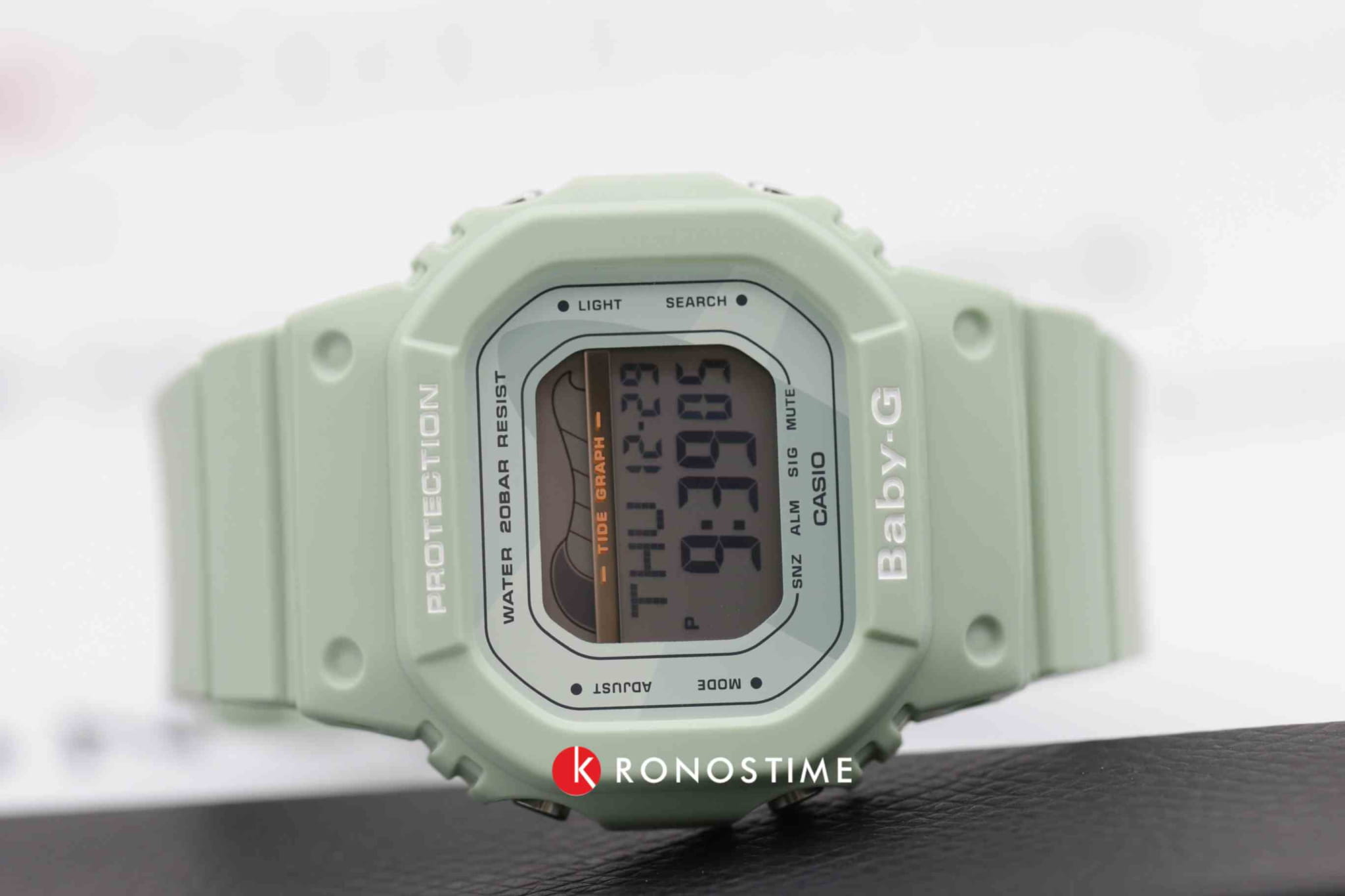 Пастельно-зелёный оттенок сразу влюбляет в себя, характерным элементом стал узнаваемый 8-угольный корпус, отдающий должное первым моделям Casio. Модель серии G-Lide оснащена полезным функционалом, позволяющим вам выбрать оптимальное время для сёрфинга, этому способствуют отображение фаз луны и график приливов и отливов. Противоударный корпусУдаропрочный корпусМеханизм заключён в корпус, выполненный из современных материалов, устойчивых к ударам, механическим повреждениям и падению с высоты: инновационный пластик, карбон, нержавеющая сталь, титан. и мягкий ремешок выполнены из пластика, что позволяет не бояться случайных ударов и падения часов. Японский кварцевый калибр с абсолютной точностью хода. Батарейка рассчитана на 3 года службы. Водостойкость до 20 бар. Электролюминесцентная подсветкаЭлектролюминесцентная подсветкаЭлектролюминесцентная панель устанавливается под ЖК-экраном часов, при нажатии кнопки электричество преобразуется в свет за счёт подачи напряжения на атомы фосфора, такой тип подсветки позволяет освещать весь циферблат. циферблата. Секундомер, будильник, календарь, таймер, мировое времяМировое время Полезное часовое усложнение, отображающее время в основных городах и известных областях по всему миру, оно связано с часовыми поясами, удобно для путешественников и бизнесменов. - 48 городов. Габариты: 40 x 44,7 x 12,5 мм.