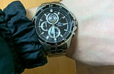 Японский мужской хронографХронографФункция позволяет измерять отрезки времени с особой точностью: часы, минуты, секунды. Верным признаком хронографа является наличие на циферблате 3 дополнительных окошек-счётчиков. из коллекции Edifice отражает дух высоких скоростей, брендовая модель поможет подчеркнуть индивидуальный образ.