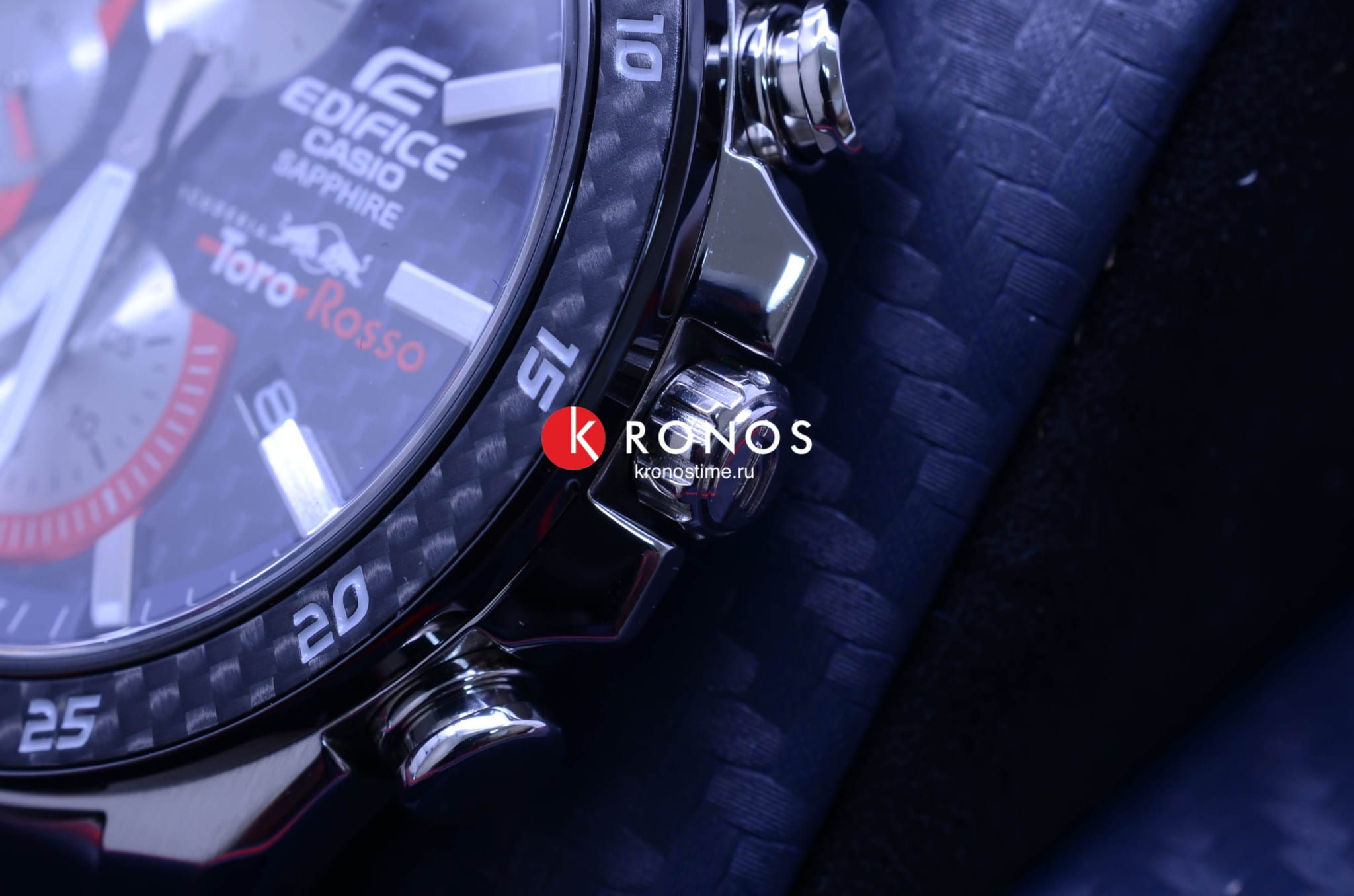 Аксессуар сочетает красный, синий, серебристые оттенки - цвета легендарного гоночного автомобиля Scuderia Toro Rosso STR14. Стальной безельБезельВнешний ободок, закрепляющий стекло. В спортивных часах так называется поворотное кольцо с делениями на циферблате, выполняет роль таймера – замеряет отрезки времени на шкале. Неподвижный безель – элемент декора. Однонаправленно вращающийся безель на дайверских часах позволяет фиксировать моменты погружения и выныривания на поверхность. с оригинальным узором имеет карбоновую вставку для усиления ударопрочных свойств. Срок службы батарейки составляет 5 лет без необходимости замены. Стрелки и метки с люминесцентной подсветкойЛюминесцентное покрытиеПозволяет считывать показания времени в темноте. Производители наносят на стрелки, часовые индексы, безель или поверхность циферблата светонакопительный состав, дающий холодное свечение.. Подсветка экрана. Сапфировое стекло практически невозможно поцарапать. Предохранительная застёжка предотвращает случайное расстёгивание браслета. Секундомер, отображение даты. Габариты: 50,5 x 45,6 x 9,5 мм.