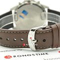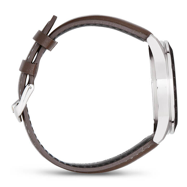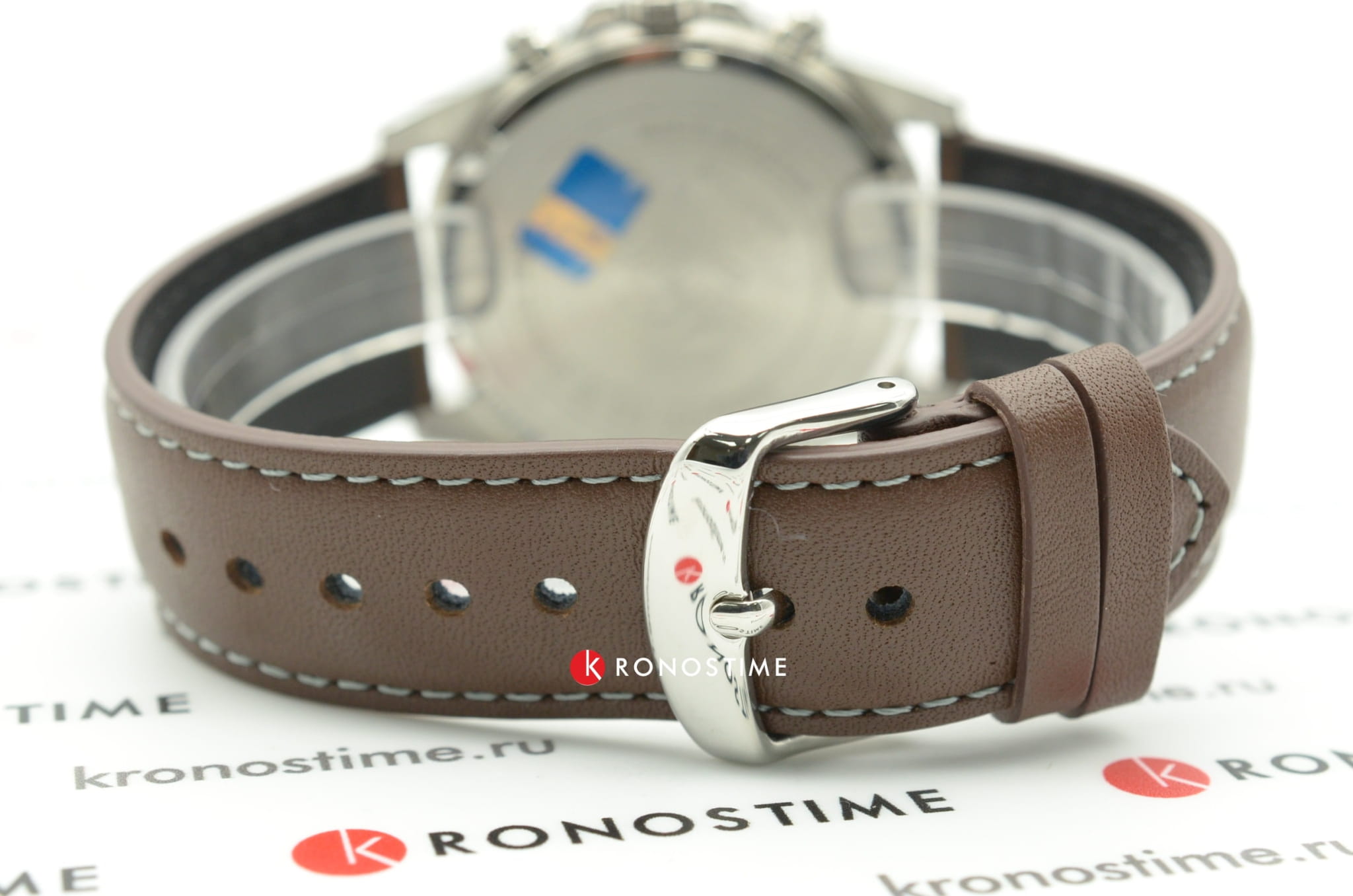 Синий циферблат с серебристыми и красными элементами дизайна выглядит смело и брутально, модель станет отличным вариантом для завершения повседневного образа. В основе кварцевого механизма находится мощная батарейка, эксплуатационный срок которой составляет 2 года. Ударопрочный корпусУдаропрочный корпусМеханизм заключён в корпус, выполненный из современных материалов, устойчивых к ударам, механическим повреждениям и падению с высоты: инновационный пластик, карбон, нержавеющая сталь, титан. выполнен из хирургической стали 316L, безельБезельВнешний ободок, закрепляющий стекло. В спортивных часах так называется поворотное кольцо с делениями на циферблате, выполняет роль таймера – замеряет отрезки времени на шкале. Неподвижный безель – элемент декора. Однонаправленно вращающийся безель на дайверских часах позволяет фиксировать моменты погружения и выныривания на поверхность. имеет цветное IP-покрытиеIP-покрытиеМетод ионного напыления. Демонстрирует повышенную устойчивость к истиранию, окислению и химическим веществам. Под воздействием высокого давления и температуры около 1500°C молекулы металла надёжно соединяются с частицами корпуса часов.. Минеральное стекло устойчиво к царапинам. Водозащита 100 метров. Люминесцентная подсветкаЛюминесцентное покрытиеПозволяет считывать показания времени в темноте. Производители наносят на стрелки, часовые индексы, безель или поверхность циферблата светонакопительный состав, дающий холодное свечение.. Ремешок из натуральной кожи. Секундомер, хронографХронографФункция позволяет измерять отрезки времени с особой точностью: часы, минуты, секунды. Верным признаком хронографа является наличие на циферблате 3 дополнительных окошек-счётчиков., индикация даты. Габариты: 48,5 x 43,8 x 11,6 мм.