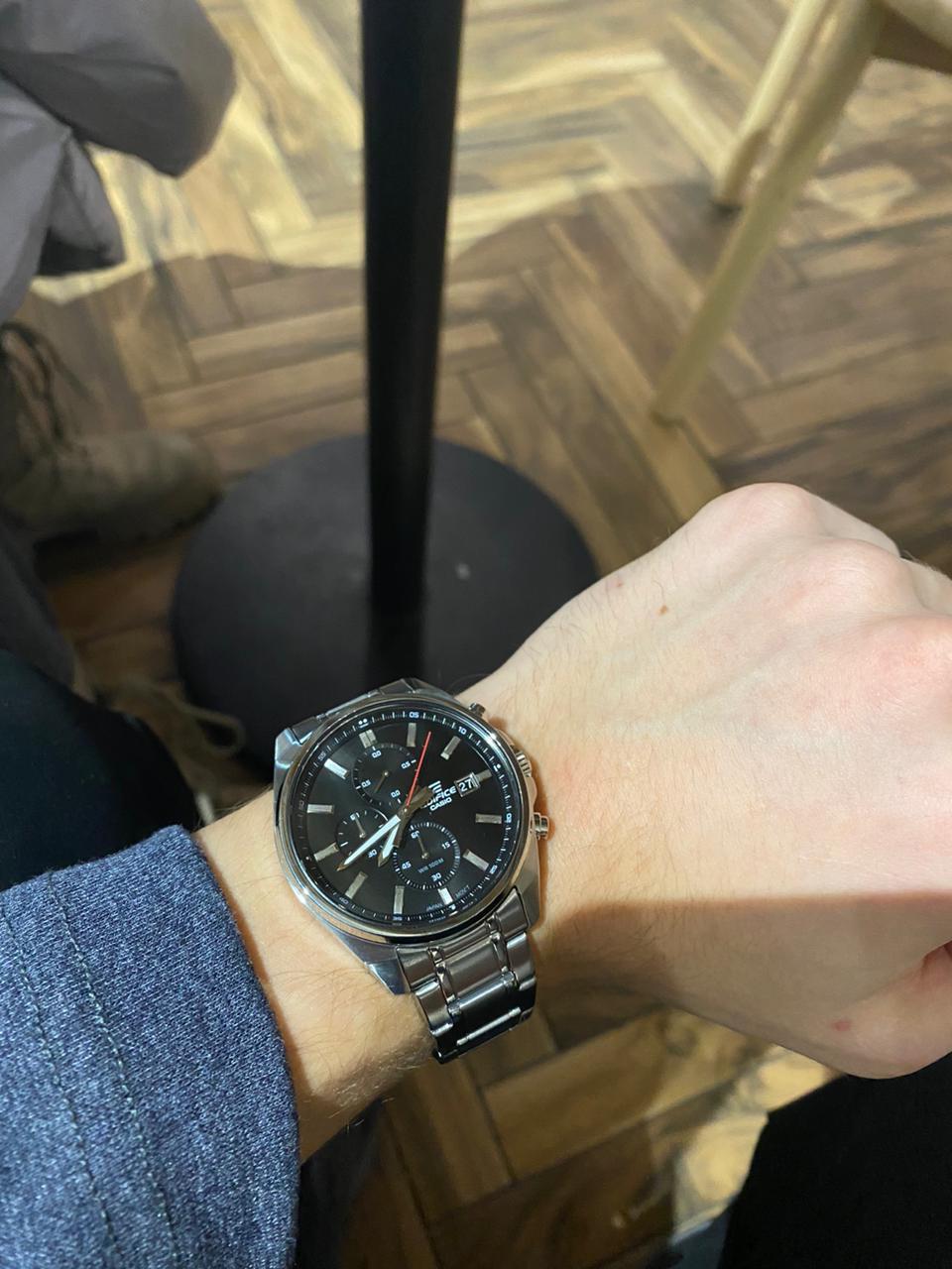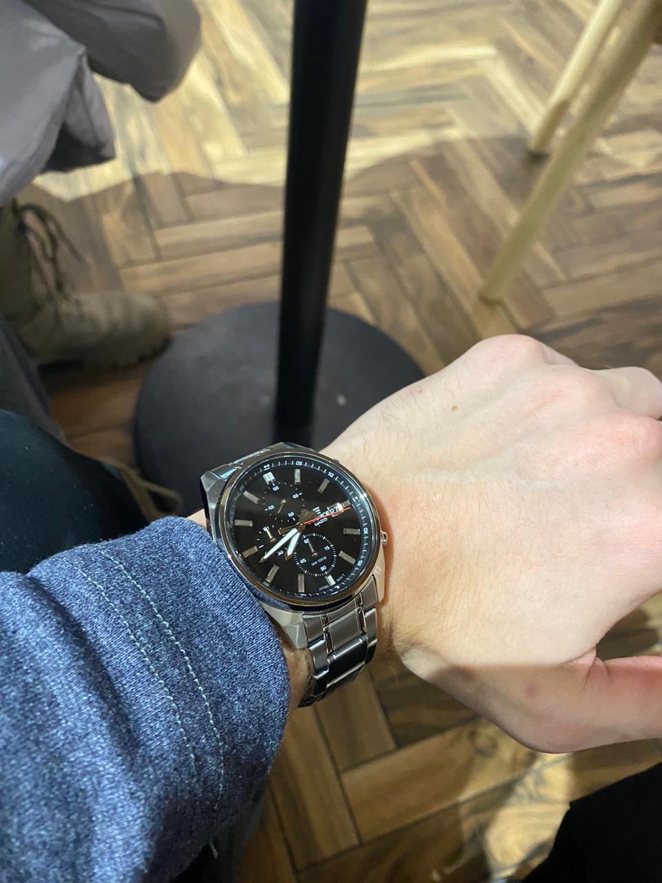 Модель Casio Edifice EFV-610D-1AVUDF сочетает спортивный стиль и функциональность, предлагая удобство в повседневном использовании. Корпус диаметром 43,8 мм выполнен из нержавеющей стали, а тонкий безельБезельВнешний ободок, закрепляющий стекло. В спортивных часах так называется поворотное кольцо с делениями на циферблате, выполняет роль таймера – замеряет отрезки времени на шкале. Неподвижный безель – элемент декора. Однонаправленно вращающийся безель на дайверских часах позволяет фиксировать моменты погружения и выныривания на поверхность. и широкий циферблат с лаконичным дизайном придают часам элегантный и современный вид.