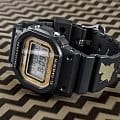DW-5600GRLZ2-1ER – корпус и браслет глухого черного цвета, а циферблат окружает золотая рамка