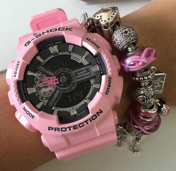 Противоударные женские наручные часы в стильном модном исполнении. Кварцевые часы круглой формы с черным фоном циферблата. Корпус из пластика с минеральным стеклом прочно удерживается на руке пластиковым браслетом розового цвета. Часы GMA-S110MP-4A2 снабжены множеством дополнительных функций - секундомер, таймер обратного отсчета, календарь, кроме того в часах есть автоматическая LED-подсветка дисплея, которая активируется как при нажатии кнопки, так и при повороте/наклоне руки. Ежечасный сигнал, повтор сигнала будильника, функция перемещения стрелок. Элемент питания в часах CR1220 расчитан на работу в течении 3 лет. Защита от магнитных полей. Водонепроницаемость часов от 200 метров (возможны занятия дайвингом).