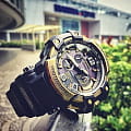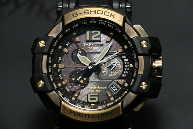 Флагманская лимитированная модель в черном корпусе с титановым безелем цвета винтажного золота из серии GRAVITYMASTER™ — это первые в мире часы с GPS- и радио-синхронизацией времени с атомными часами на разных континентах.