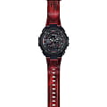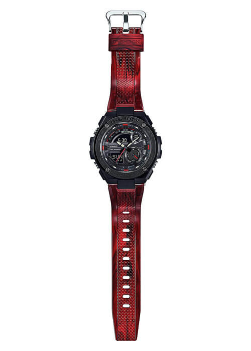Аксессуар является представителем современного направления G-Steel. Он обладает надежным ударопрочным корпусомУдаропрочный корпусМеханизм заключён в корпус, выполненный из современных материалов, устойчивых к ударам, механическим повреждениям и падению с высоты: инновационный пластик, карбон, нержавеющая сталь, титан. из нержавеющей стали 316L, между ним и безелемБезельВнешний ободок, закрепляющий стекло. В спортивных часах так называется поворотное кольцо с делениями на циферблате, выполняет роль таймера – замеряет отрезки времени на шкале. Неподвижный безель – элемент декора. Однонаправленно вращающийся безель на дайверских часах позволяет фиксировать моменты погружения и выныривания на поверхность. находится полимерная прокладка. Слой такого материала позволяет дополнительно смягчать силу удара. Японский кварцевый механизм. Батарейка SR927W рассчитана на 2 года работы. Устойчивое к износу IP-покрытиеIP-покрытиеМетод ионного напыления. Демонстрирует повышенную устойчивость к истиранию, окислению и химическим веществам. Под воздействием высокого давления и температуры около 1500°C молекулы металла надёжно соединяются с частицами корпуса часов.. Гибкий полимерный ремешок красного цвета. Автоматическая светодиодная подсветкаСветодиодная подсветкаСветодиодная или LED-подсветка обеспечивает появление яркого холодного свечения за счёт LED-элементов - маленьких лампочек. Они потребляют минимальное количество энергии, чаще всего можно встретить 1 светодиод, в нижней части циферблата.. Минеральное стекло. Включение и выключение звука кнопок. Водонепроницаемость 200 метров. Функция мирового времениМировое время Полезное часовое усложнение, отображающее время в основных городах и известных областях по всему миру, оно связано с часовыми поясами, удобно для путешественников и бизнесменов. – 31 часовой пояс, 5 ежедневных будильников, UTCUTCВсемирное кординационное время, не имеющее привязки к географическому положению Гринвича, основывается на атомном отсчёте времени. Регулировка времени осуществляется более точно, чем устаревшее GMT.